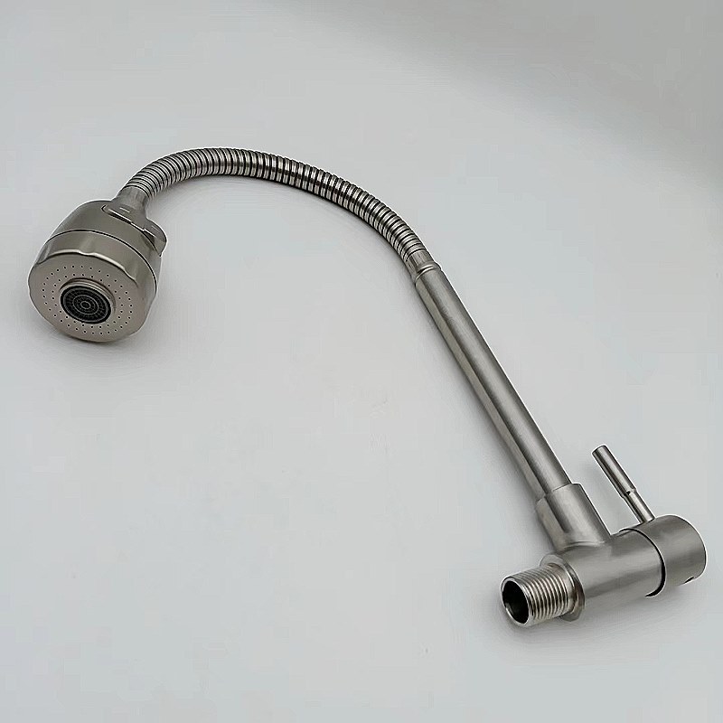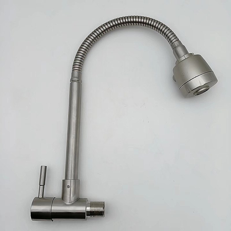 304不锈钢横式万向管拉丝菜盆单冷水龙头厨房菜盆水槽入墙水龙头