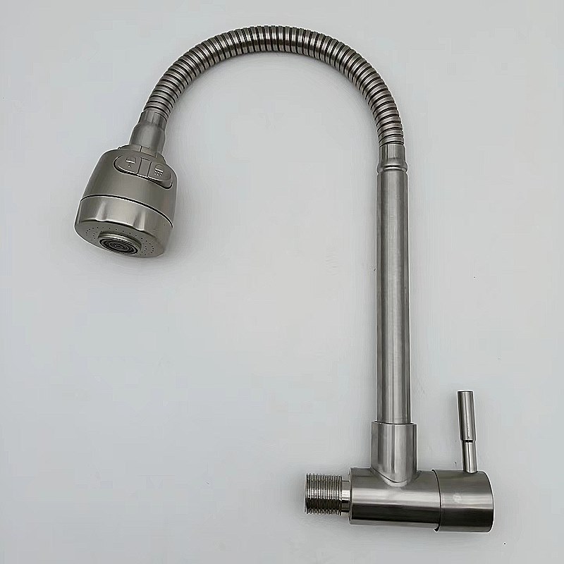 304不锈钢横式万向管拉丝菜盆单冷水龙头厨房菜盆水槽入墙水龙头 投诉
