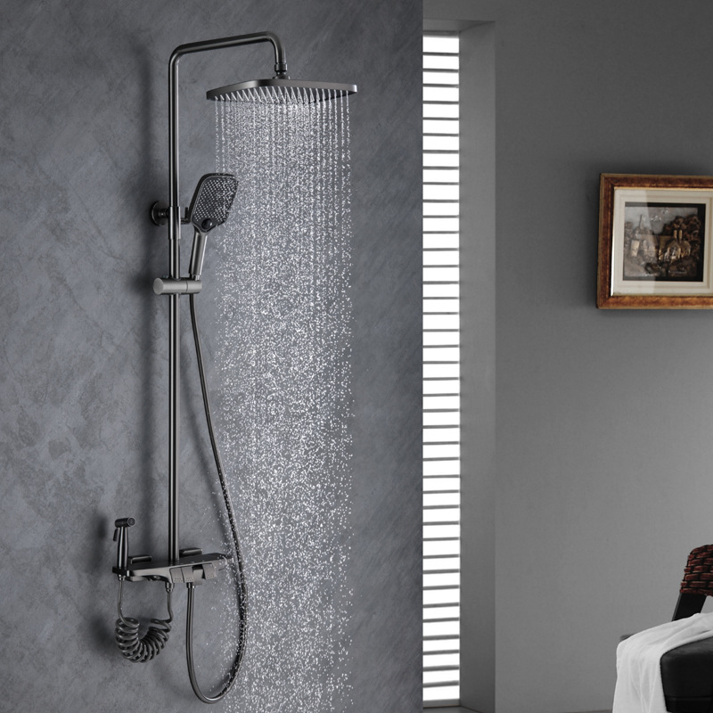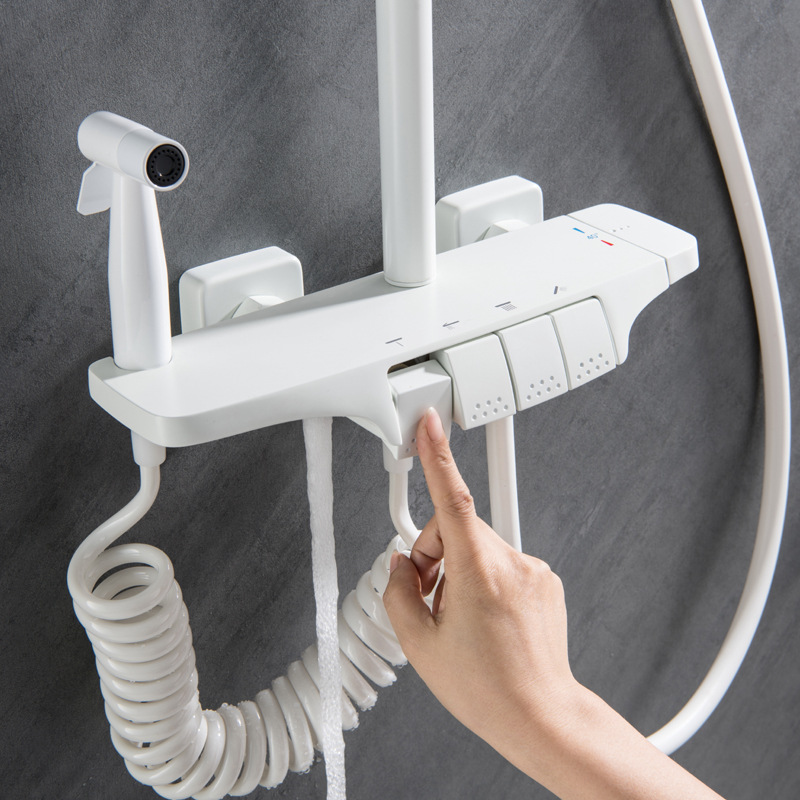 钢琴按健智能恒温淋浴花洒套装家用浴室卫生间白色枪灰沐浴喷头