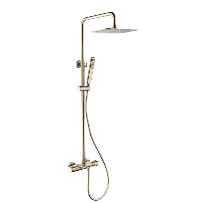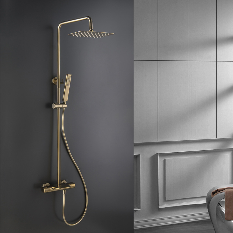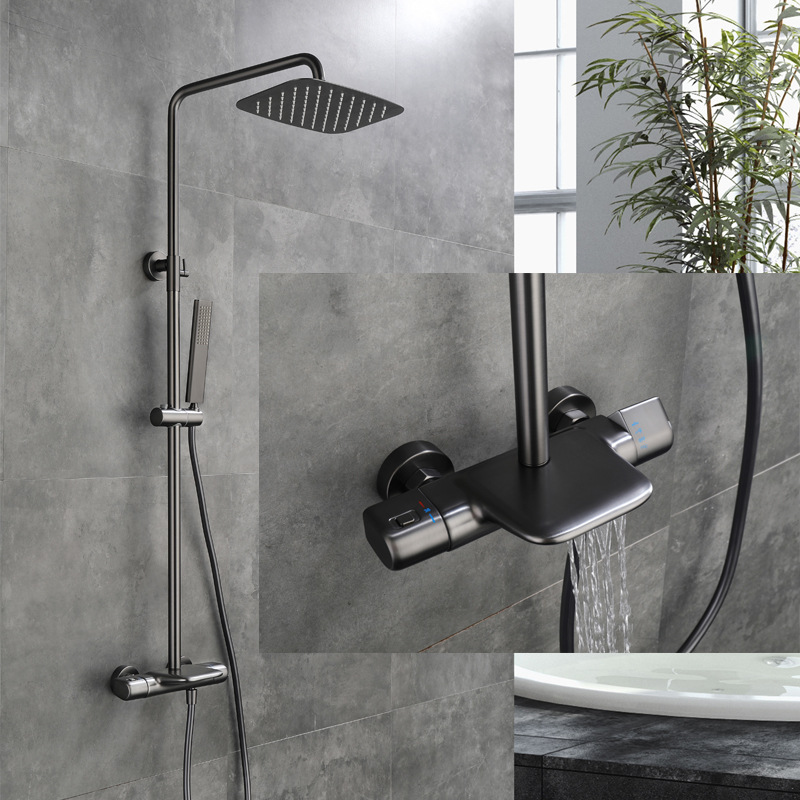 全铜主体挂墙式浴室卫生间温控冷热拉丝金枪灰色恒温淋浴花洒套装