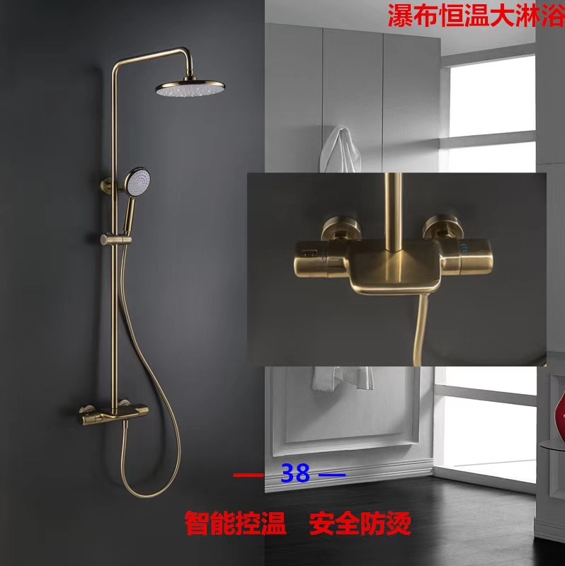全铜主体挂墙式浴室卫生间温控冷热拉丝金枪灰色恒温淋浴花洒套装 投诉