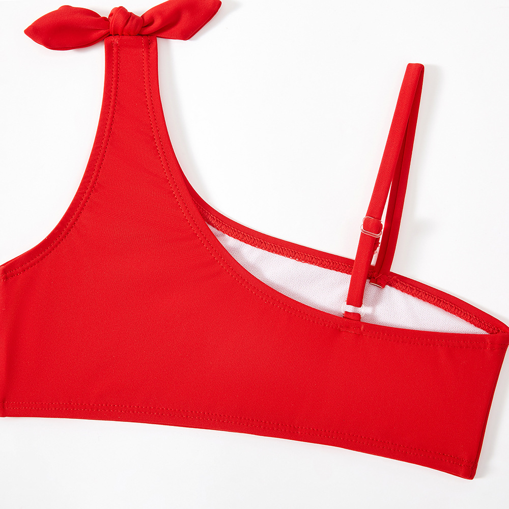 女童泳装外贸比基尼游泳馆斜肩分体儿童泳衣