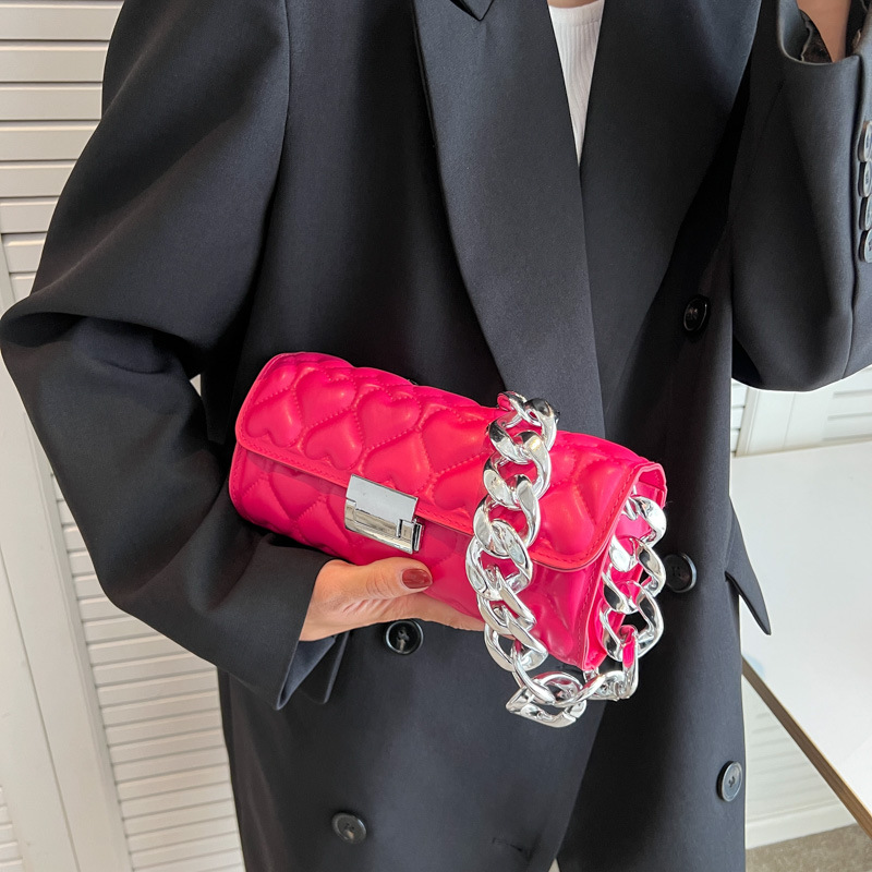 法式小众包包女包2022秋季新款纯色绣线菱格腋下包粗链条单肩包潮