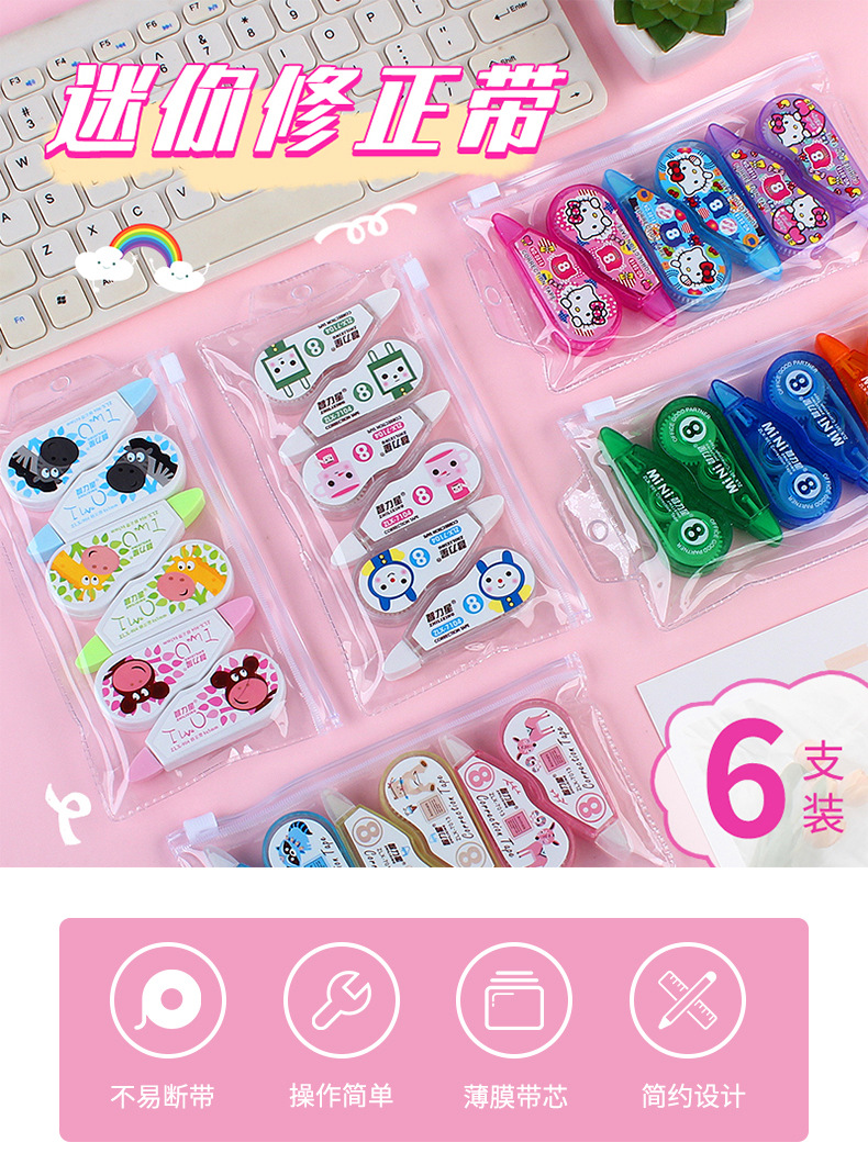 6个装修正带 涂改带创意学生用品改正带透明大容量便携修正带厂家