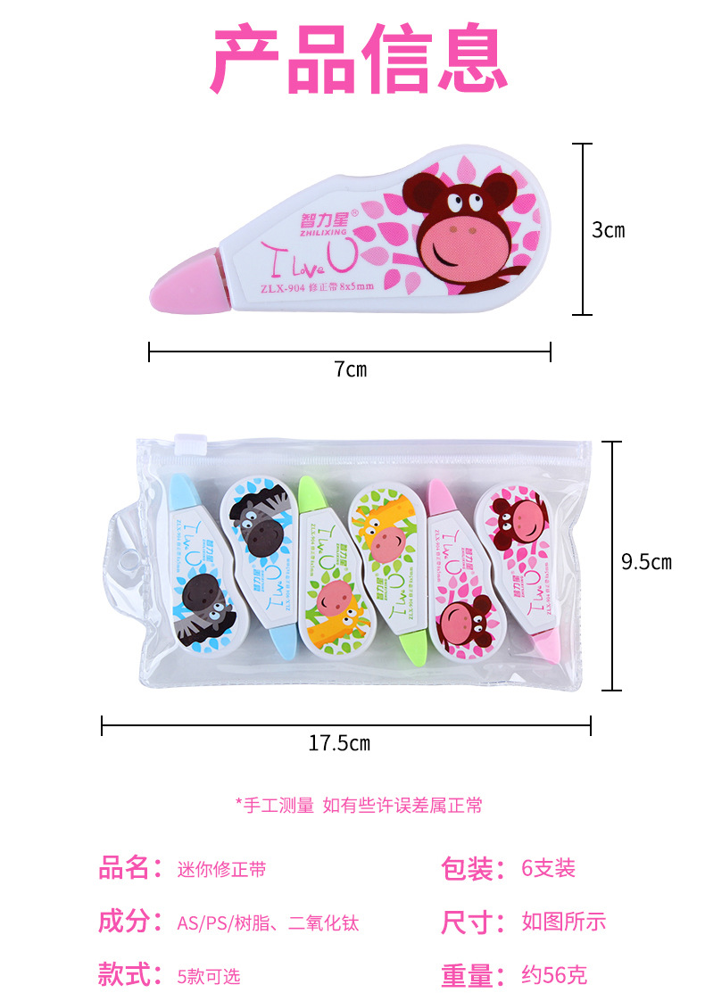 6个装修正带 涂改带创意学生用品改正带透明大容量便携修正带厂家 投诉