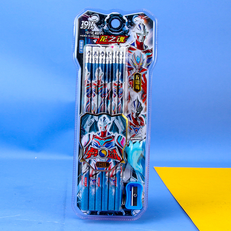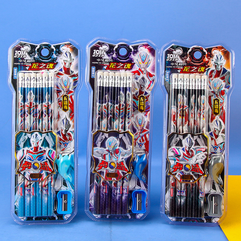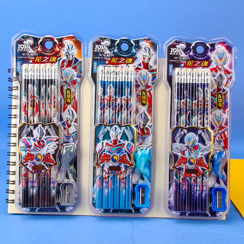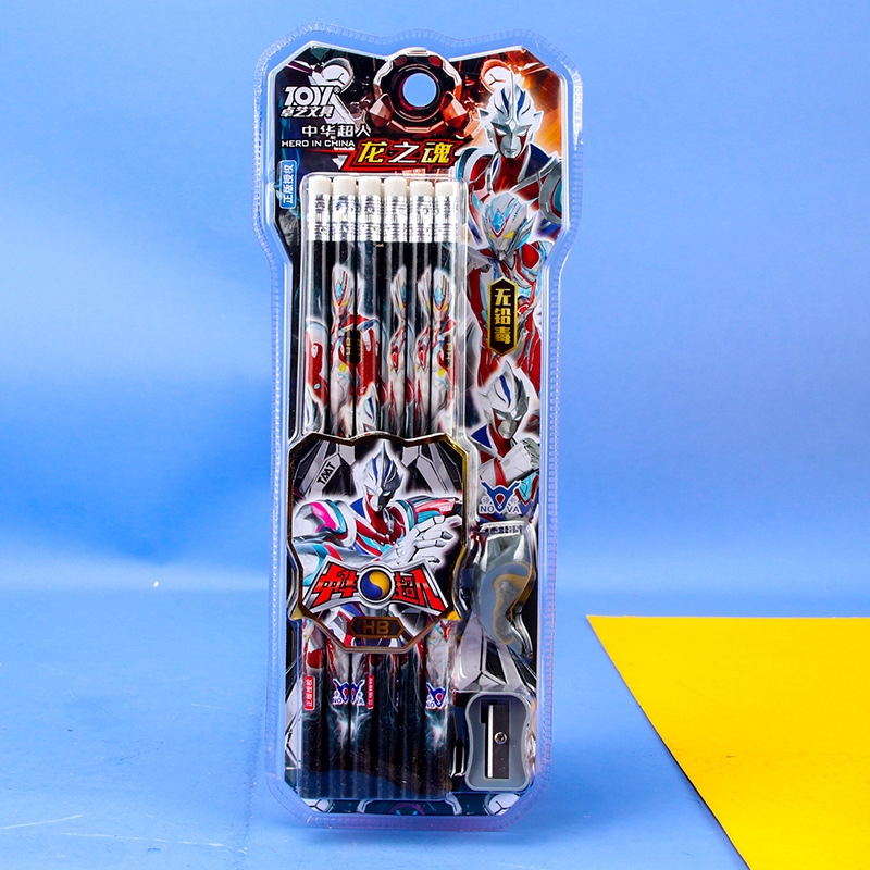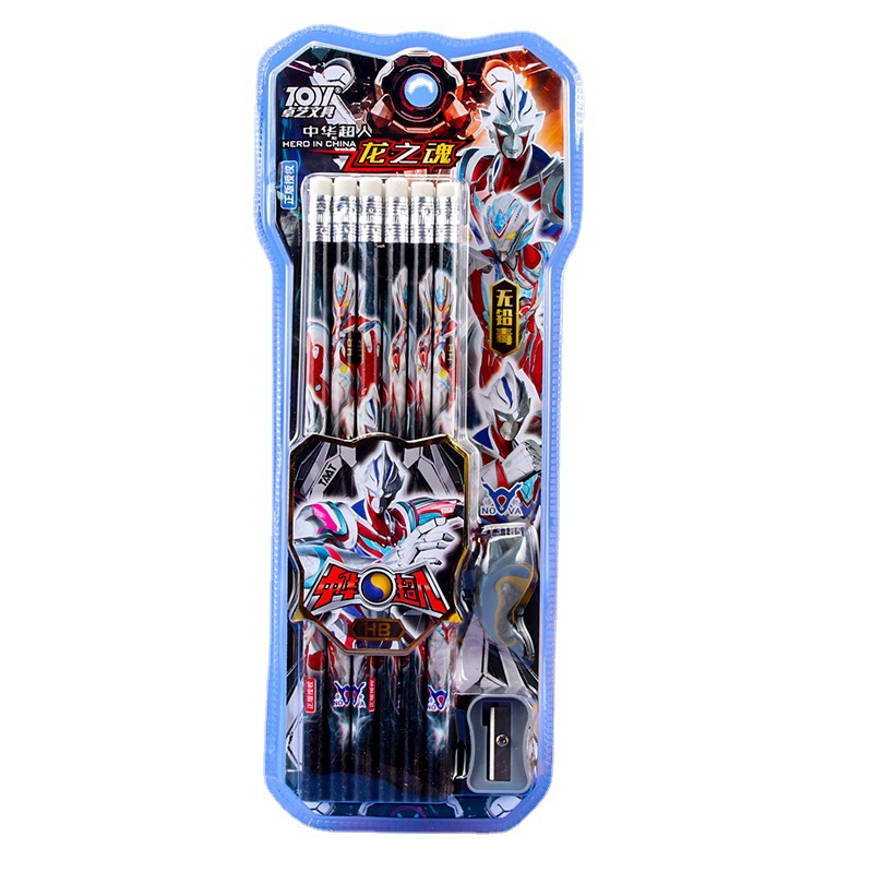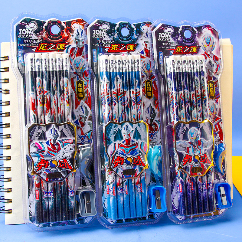 中华超人小学生儿童铅笔HB写字笔木杆铅笔12支盒装橡皮头男生铅笔