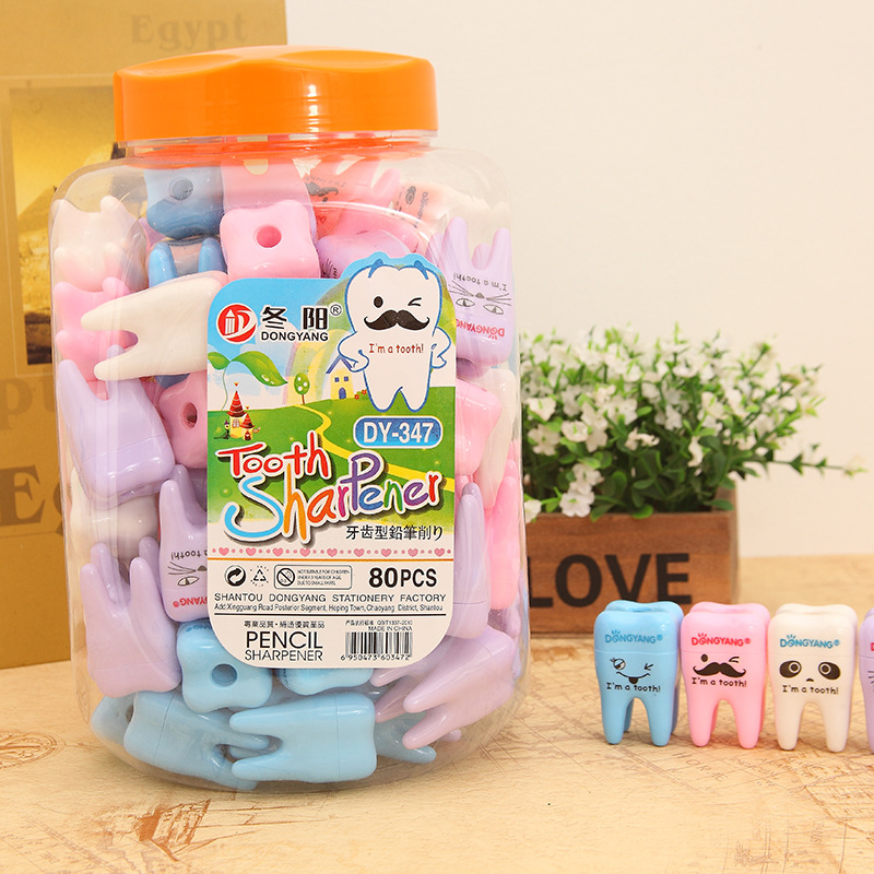 冬阳文具DY-347创意可爱卡通牙齿单孔塑料卷笔刀 削笔器 厂家直销 投诉