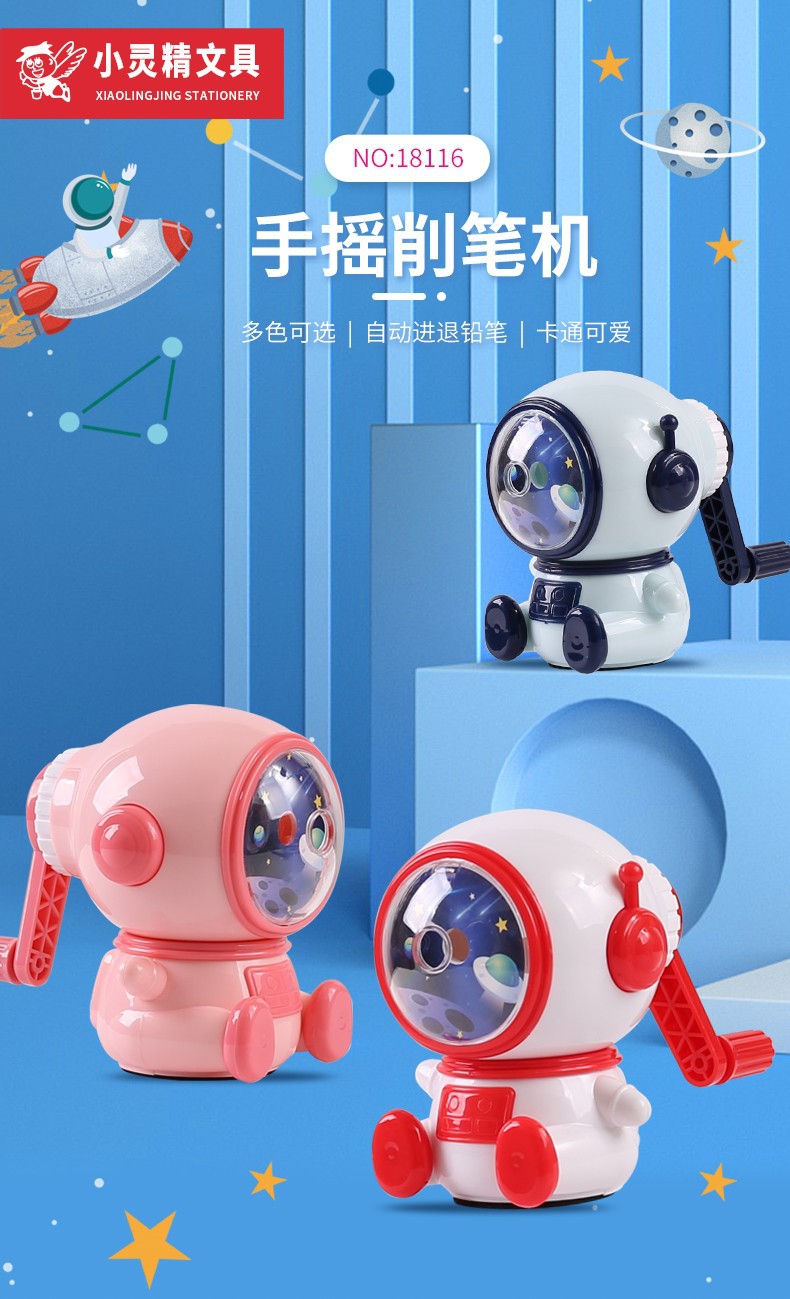 小灵精太空人削笔机手摇进笔卷笔器削笔刀可爱卡通小学生削铅笔刀