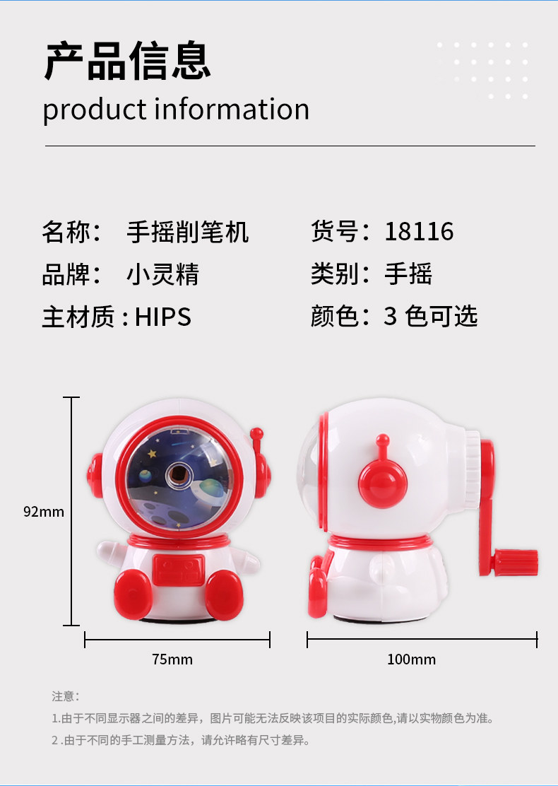 小灵精太空人削笔机手摇进笔卷笔器削笔刀可爱卡通小学生削铅笔刀 投诉