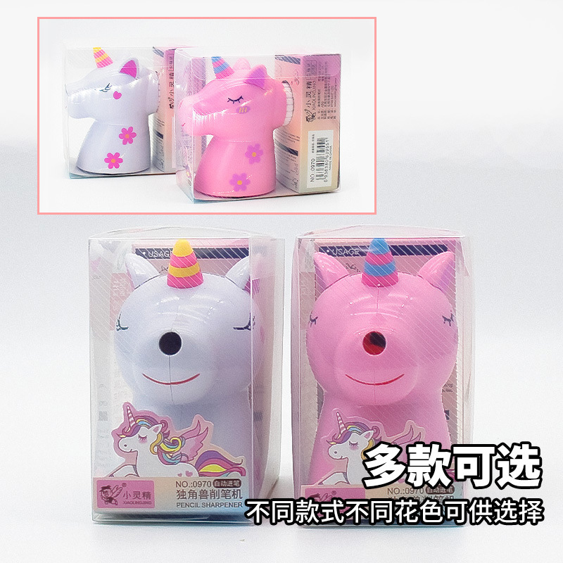 小灵精卡通可爱独角兽卷笔刀儿童学习文具手动削笔刀学生奖品批发