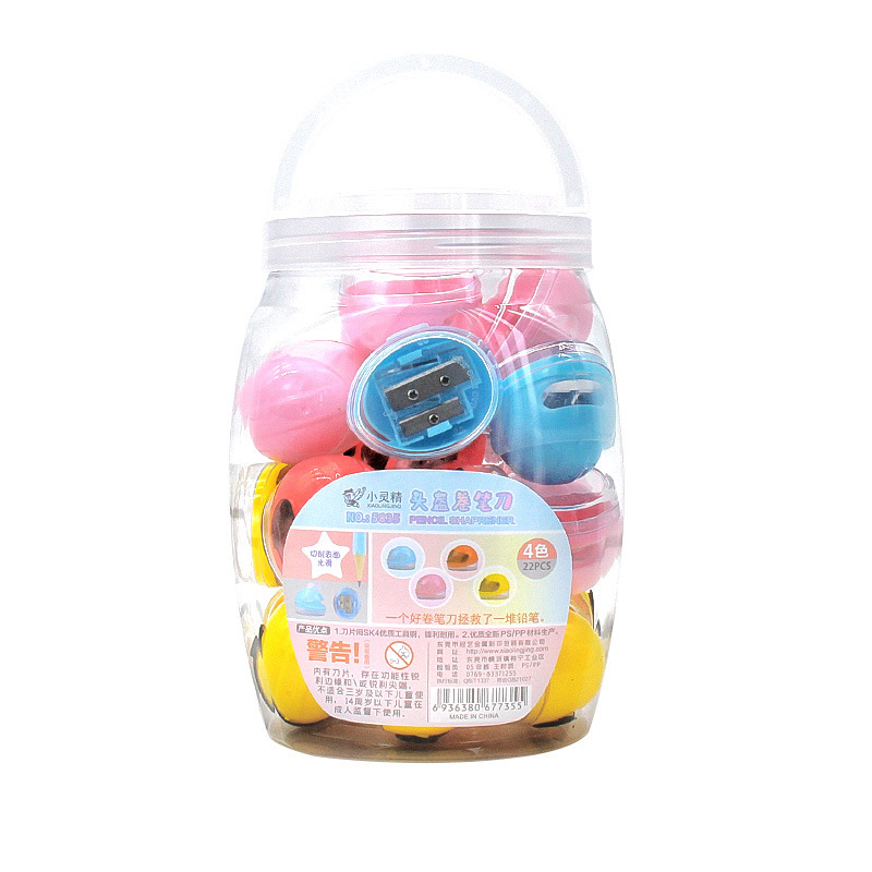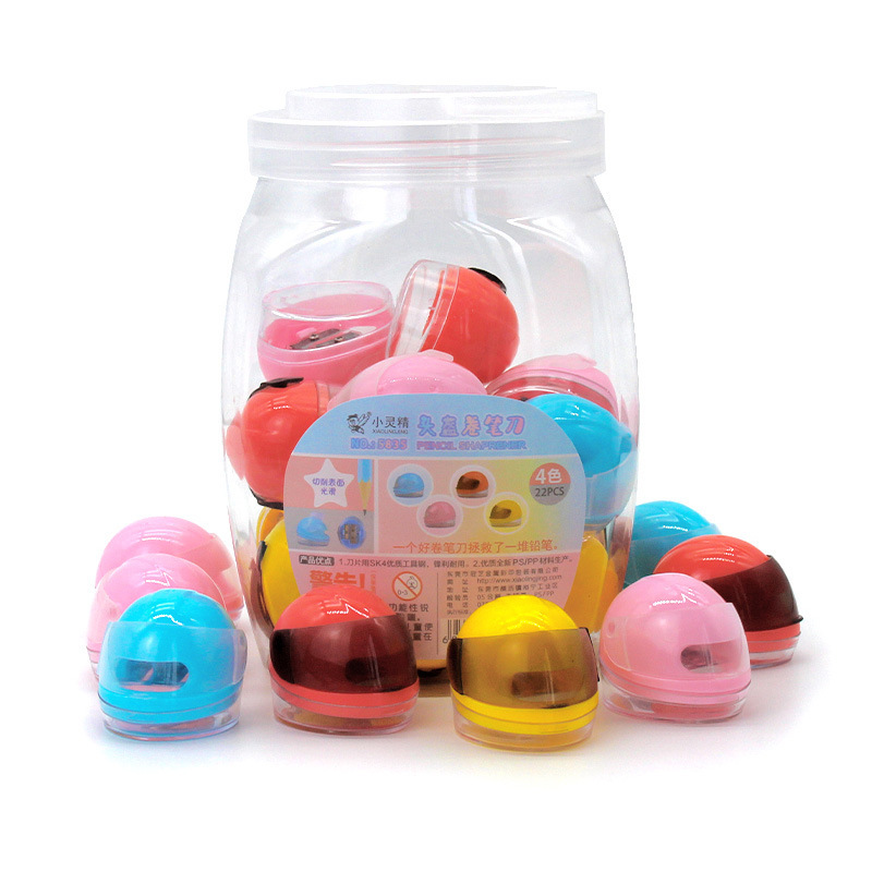 小灵精迷你单孔卷笔刀转笔多彩小号削笔器铅笔刨摩托头盔塑料桶装