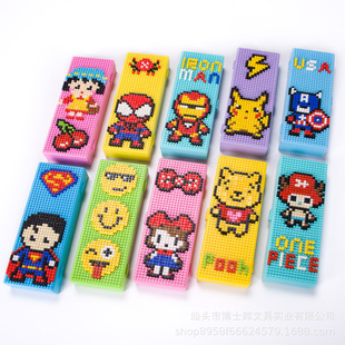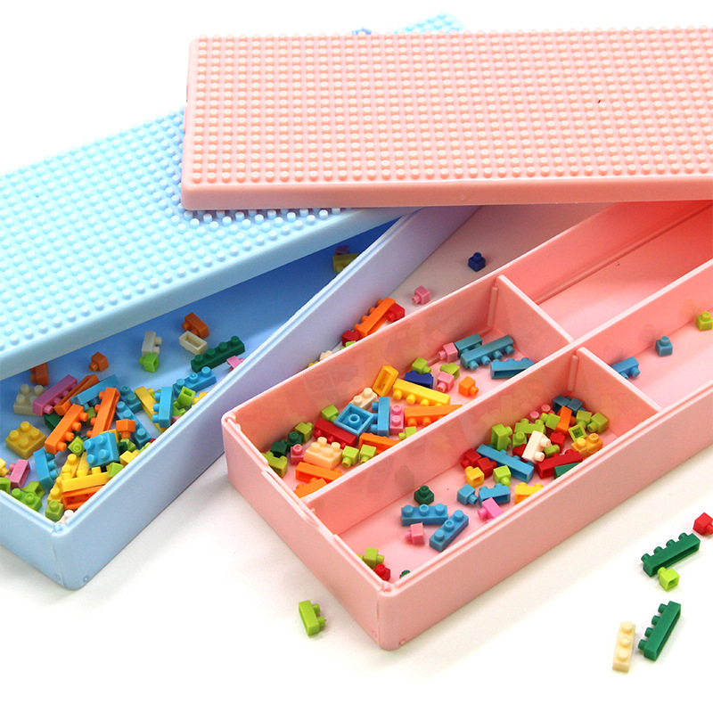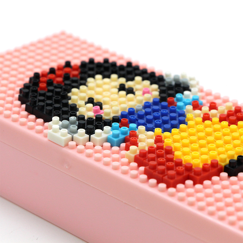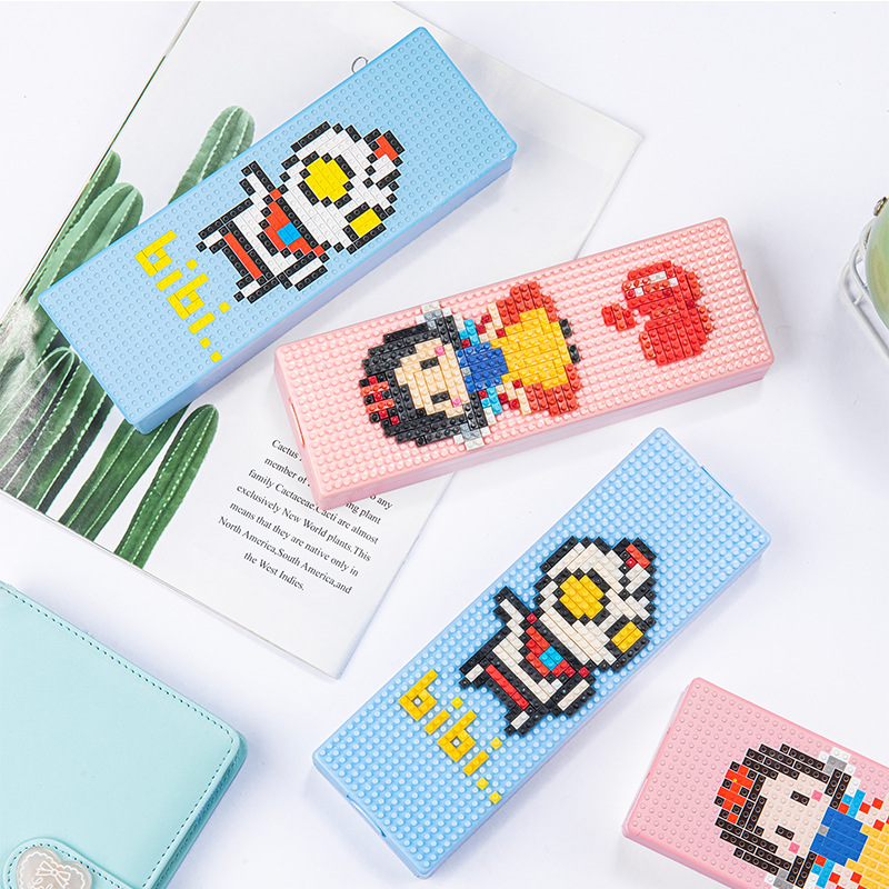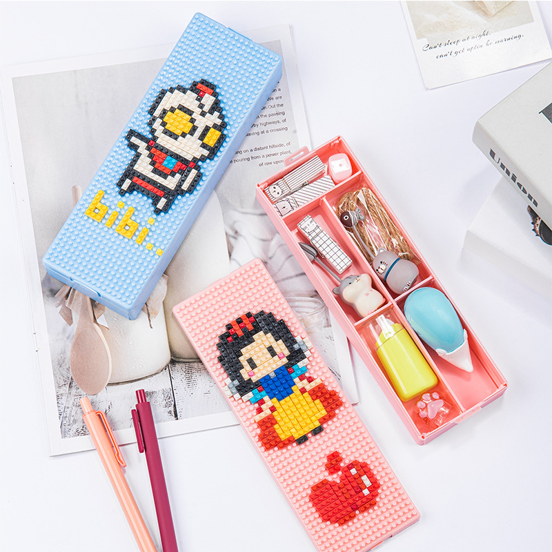 DIY创意像素积木拼图组装文具盒男女孩卡通塑料文具盒学生铅笔盒