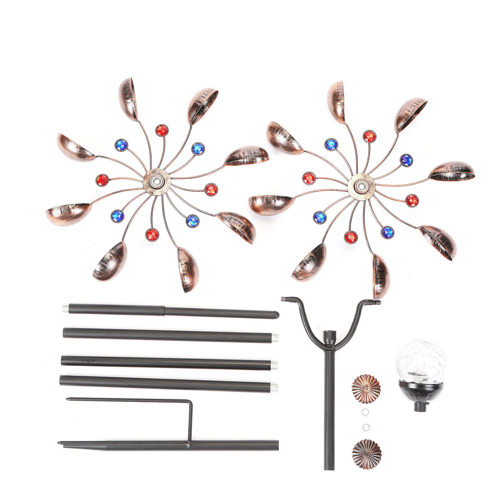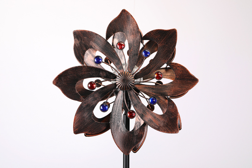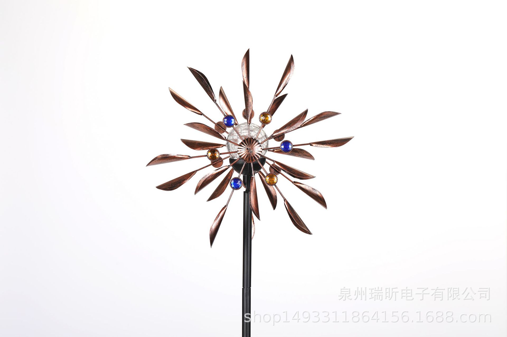 太阳能铁艺风车灯金属工艺品户外庭院景观灯玻璃球花园灯插地风车