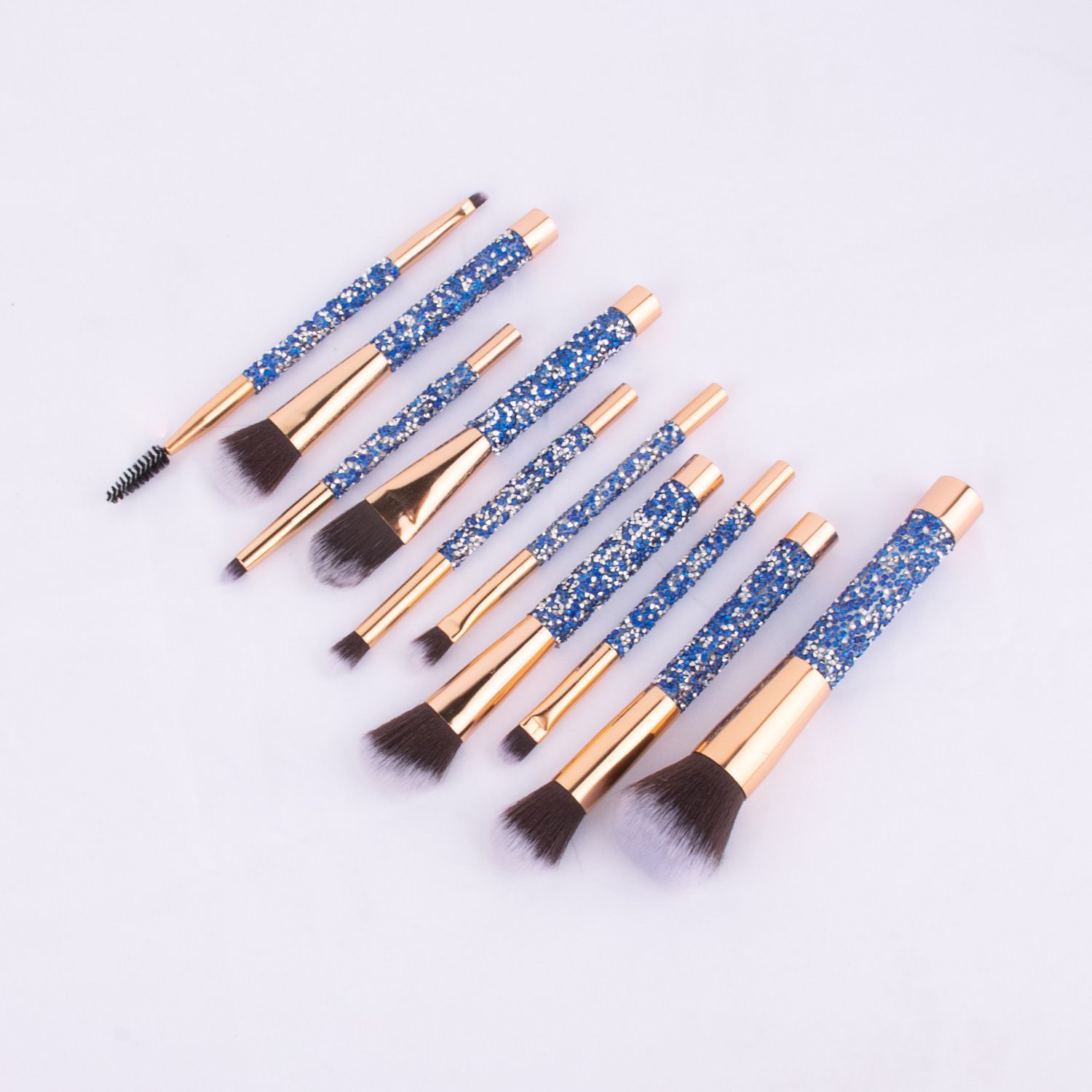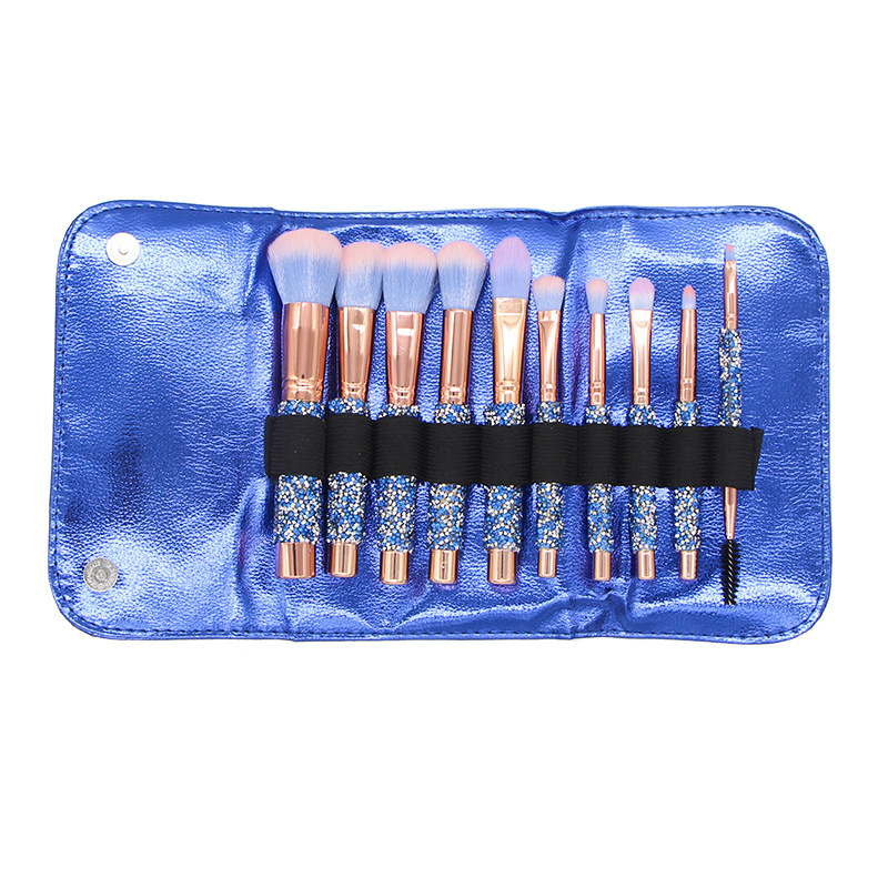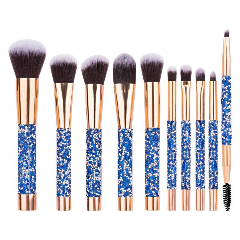 新款10支镶钻化妆刷蓝色钻石柄高档散粉眼影刷美妆工具厂家直销