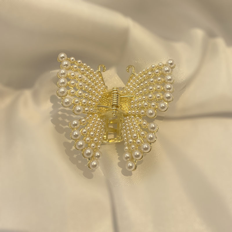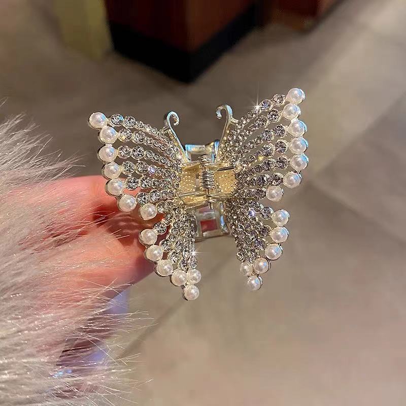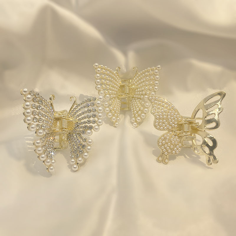 蝴蝶抓夹女珍珠发夹高马尾爪夹鲨鱼夹头饰 English | 投诉