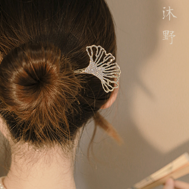 国风汉服头饰发簪古风扇形银杏叶盘发神器发钗簪子旗袍配饰 English | 投诉