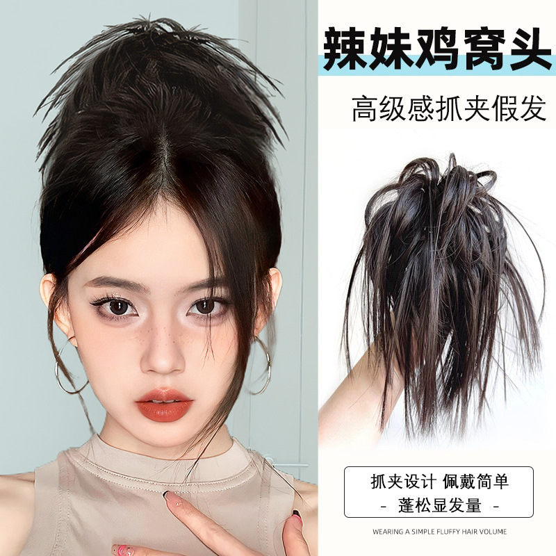 辣妹鸡窝头发抓毽子头鸡毛抓夹假发高马尾发夹女后脑勺丸子头头饰