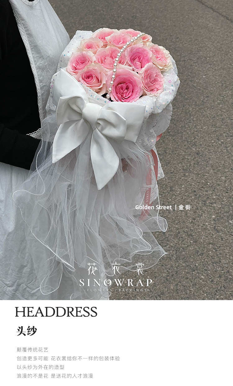花衣裳 蝴蝶结蓬蓬纱头纱鲜花包装手工材料花束纱网头饰花店花艺