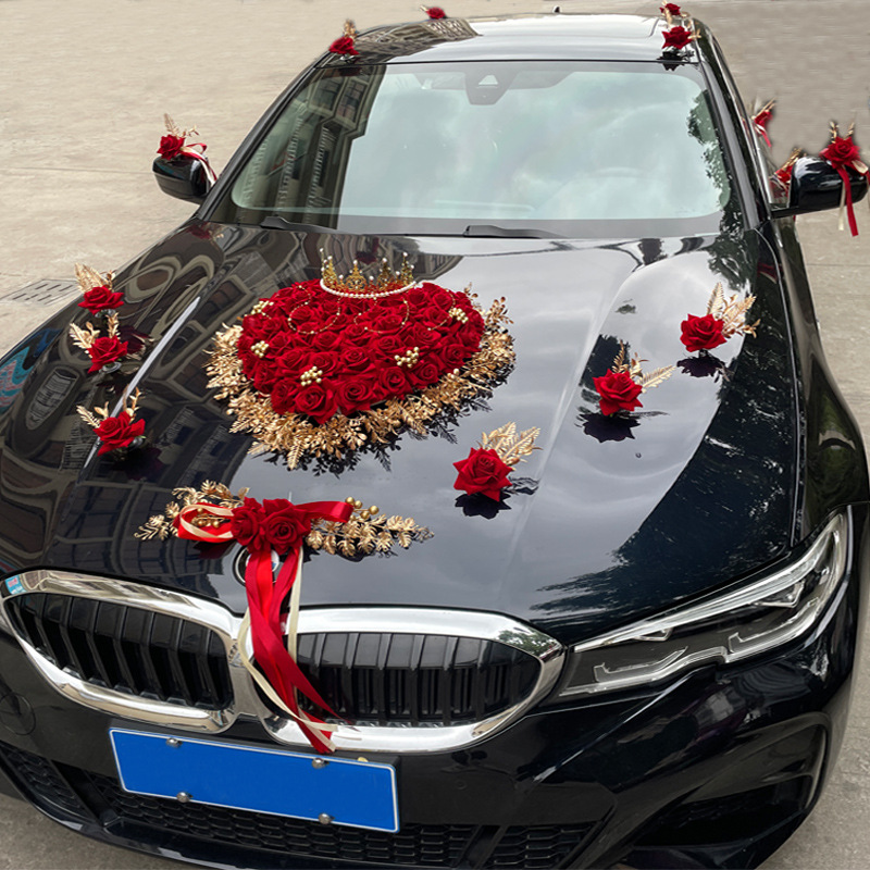【皇冠款】婚车装饰植绒仿真假花玫瑰结婚花车车头结婚车队主副车