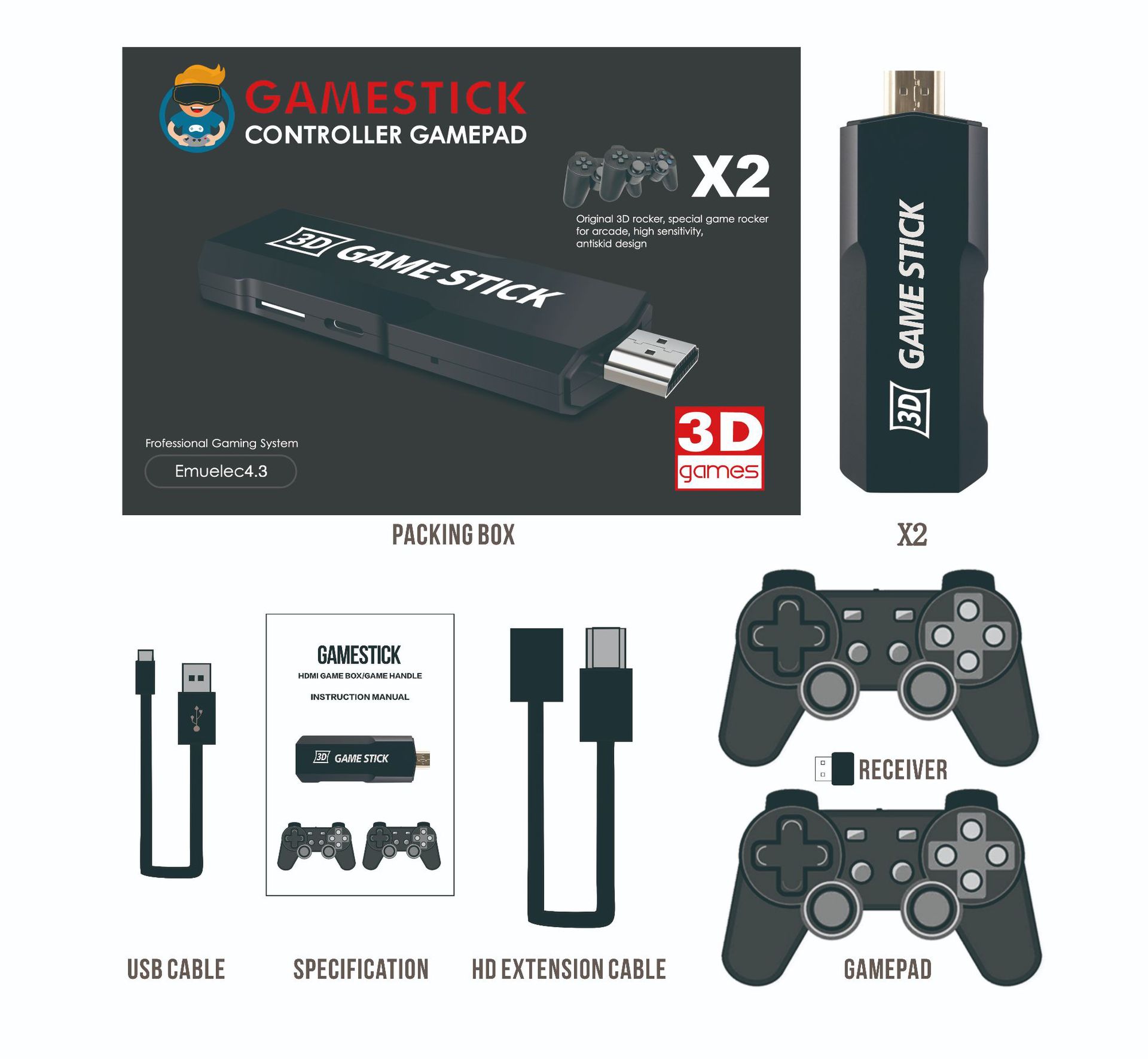 7.如何连接:只需要将游戏主机接入电视的接口,USB供电数据线接入主机,电视信源调至对应的高清频道即可在电视上显示出游戏列表画面,手柄放入电池即可遥控,即插即玩,简约大方,操作方便。