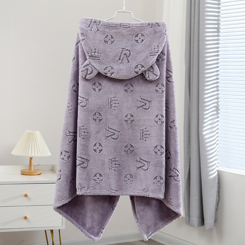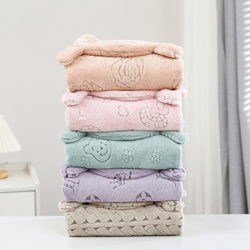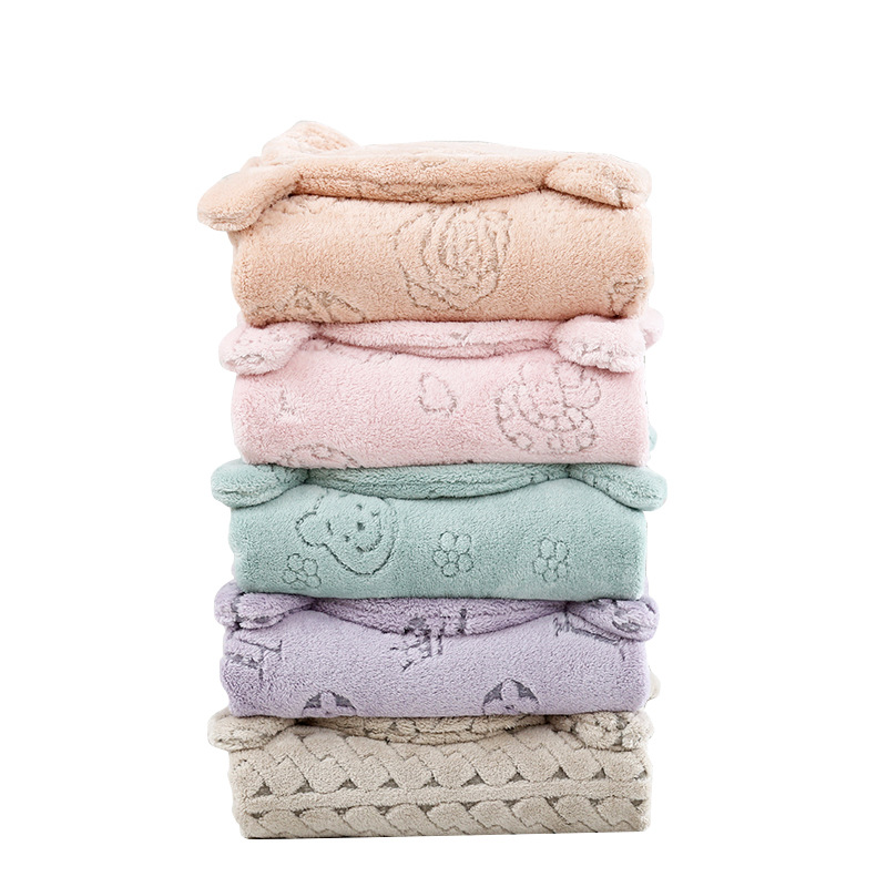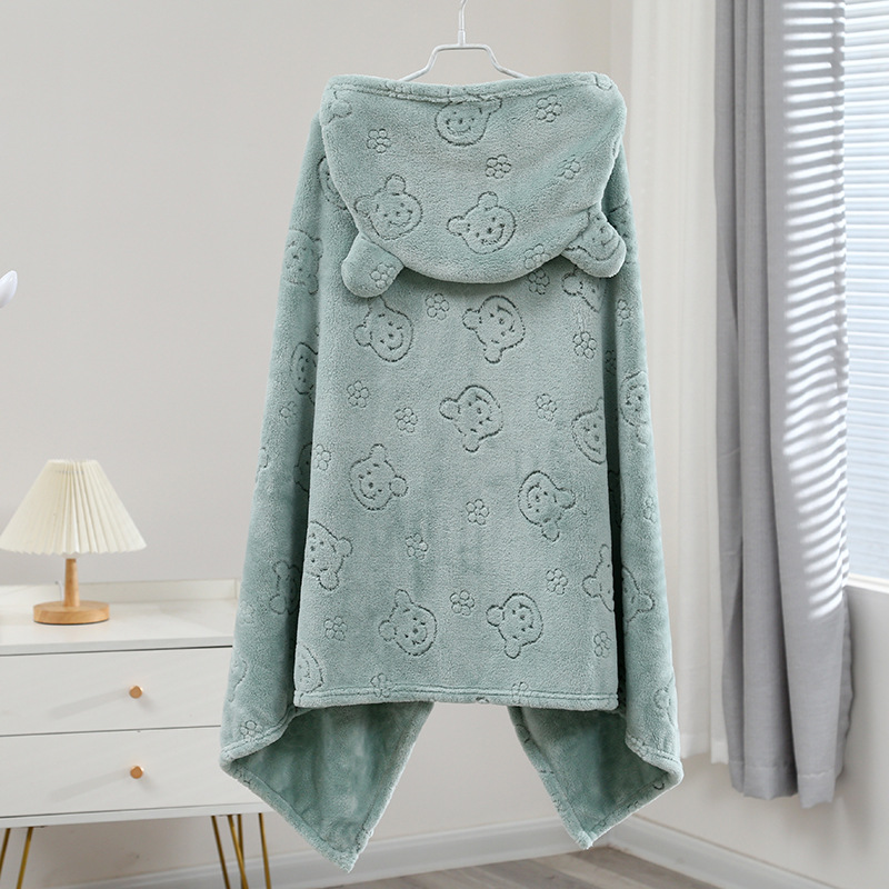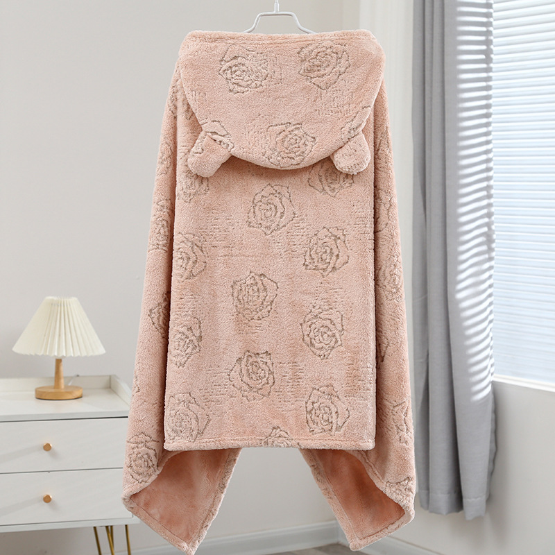 华莎新款卡通珊瑚绒柔软连帽浴巾吸水速干男童女童披风沙滩巾批发