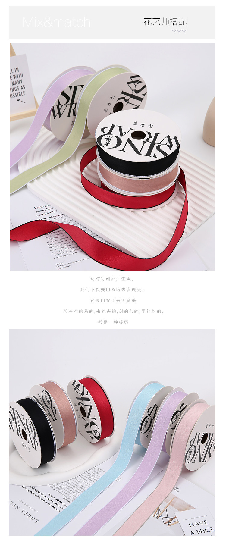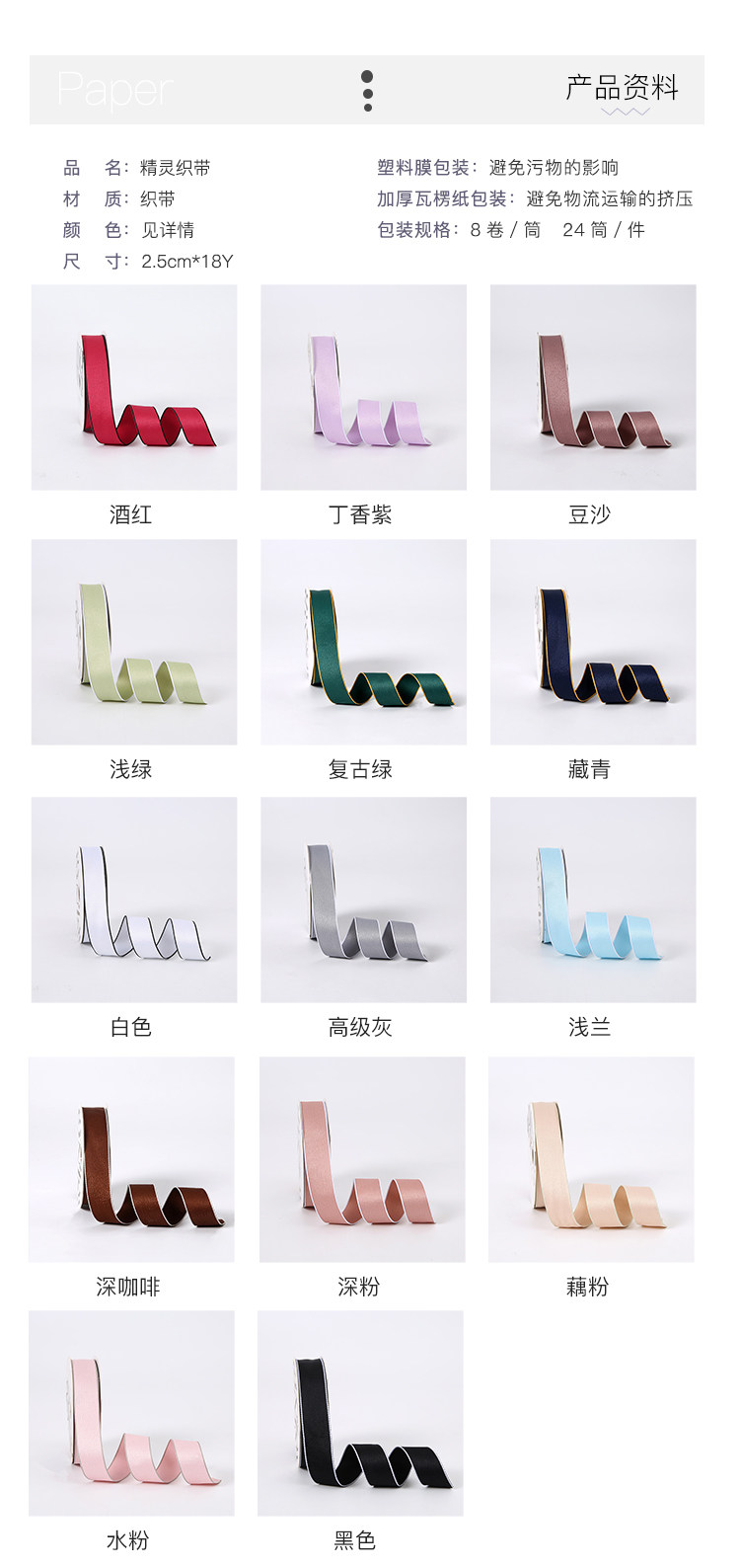 2.5CM双面涤纶丝带高密缎带礼物织带烘焙蛋糕绸带鲜花花束绑带 投诉