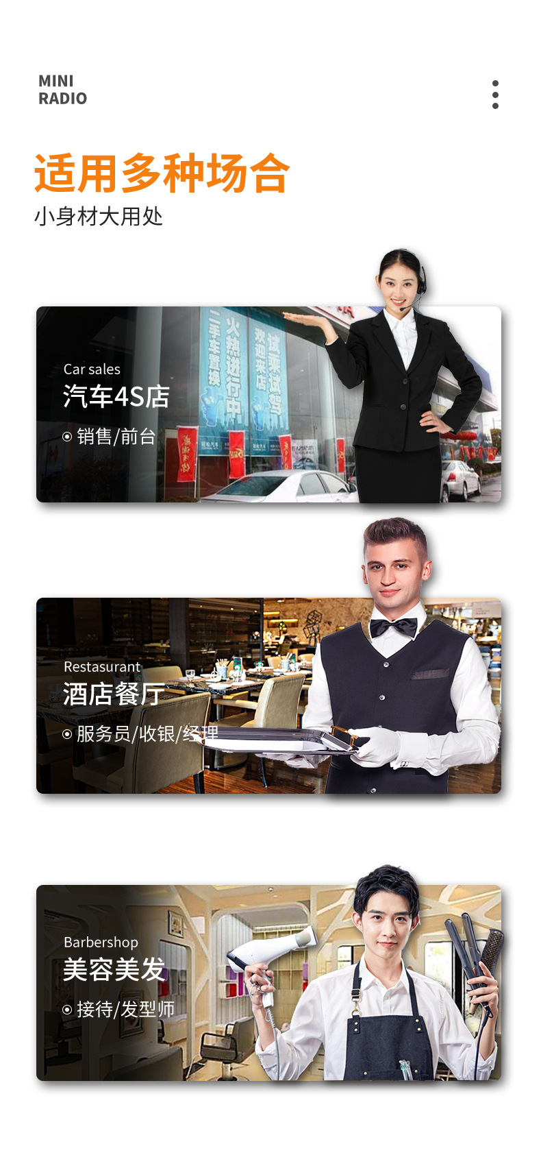 一对价迷你对讲机小机小型美容美发餐厅4S店户外无线微型对讲器