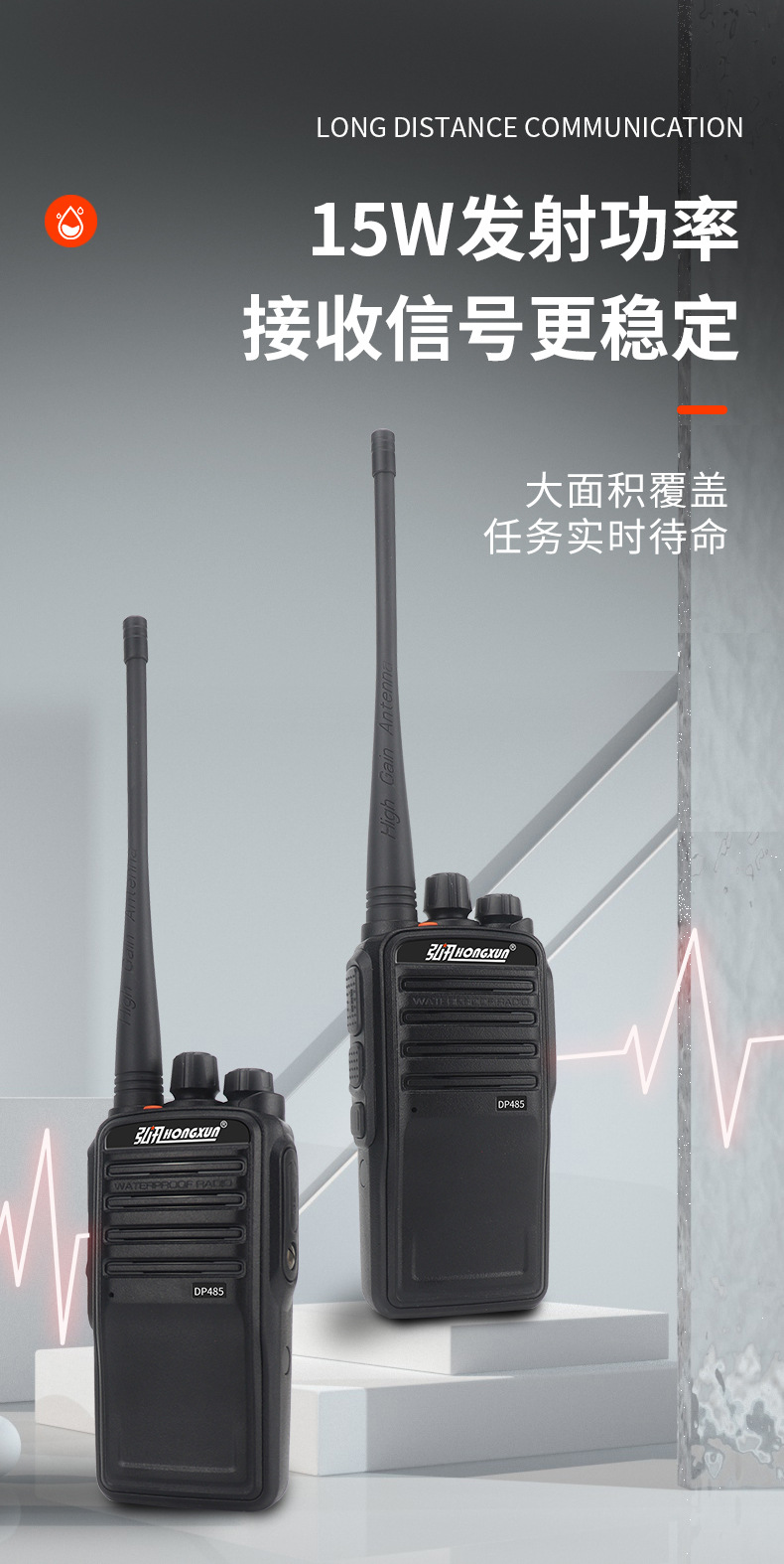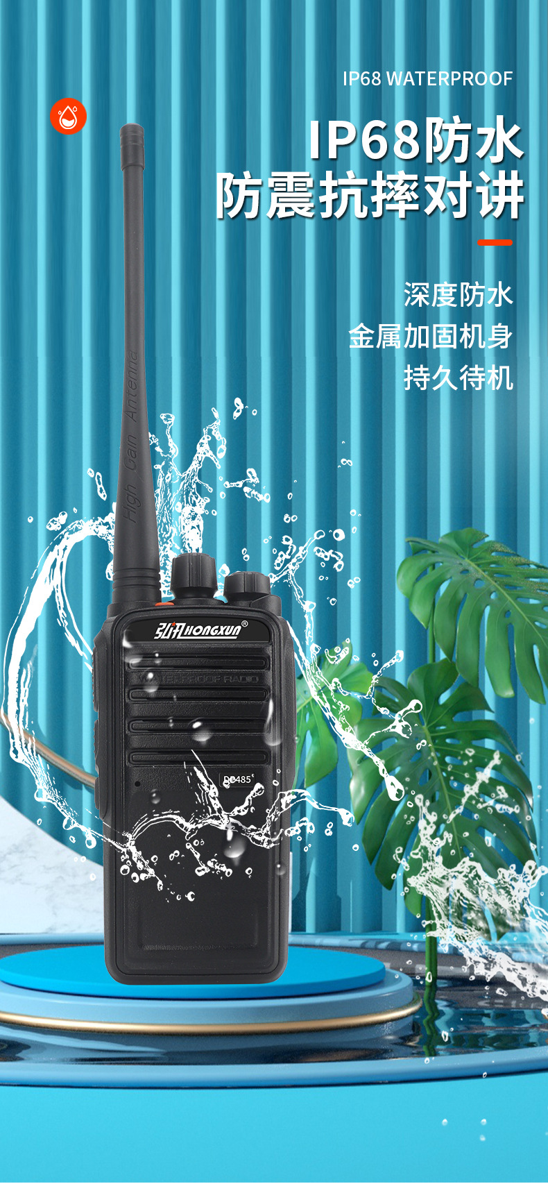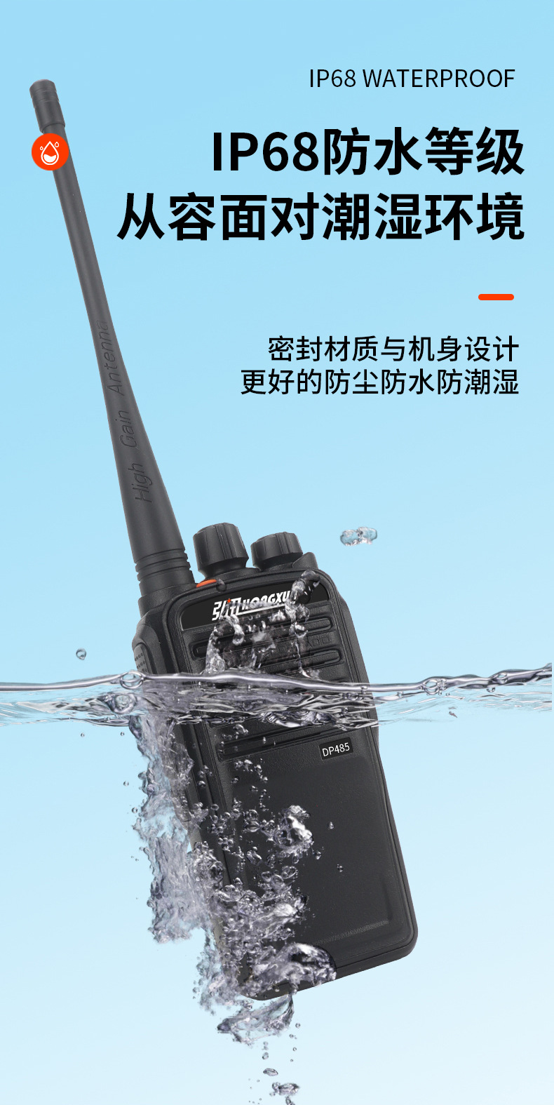 弘讯IP68防水防尘对讲机15瓦大功率船用民用工地港口防水对讲机