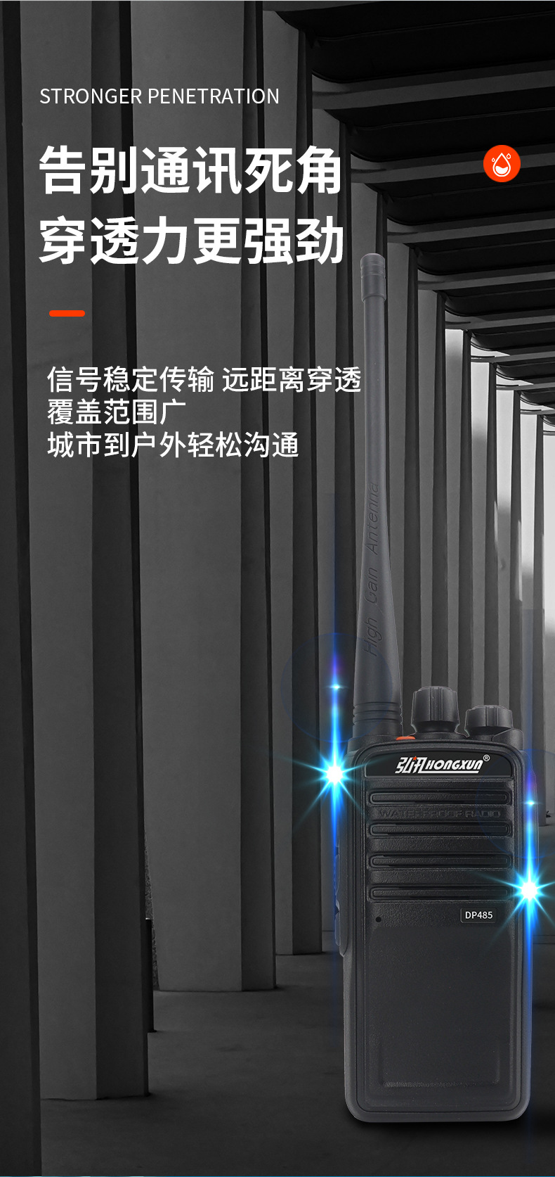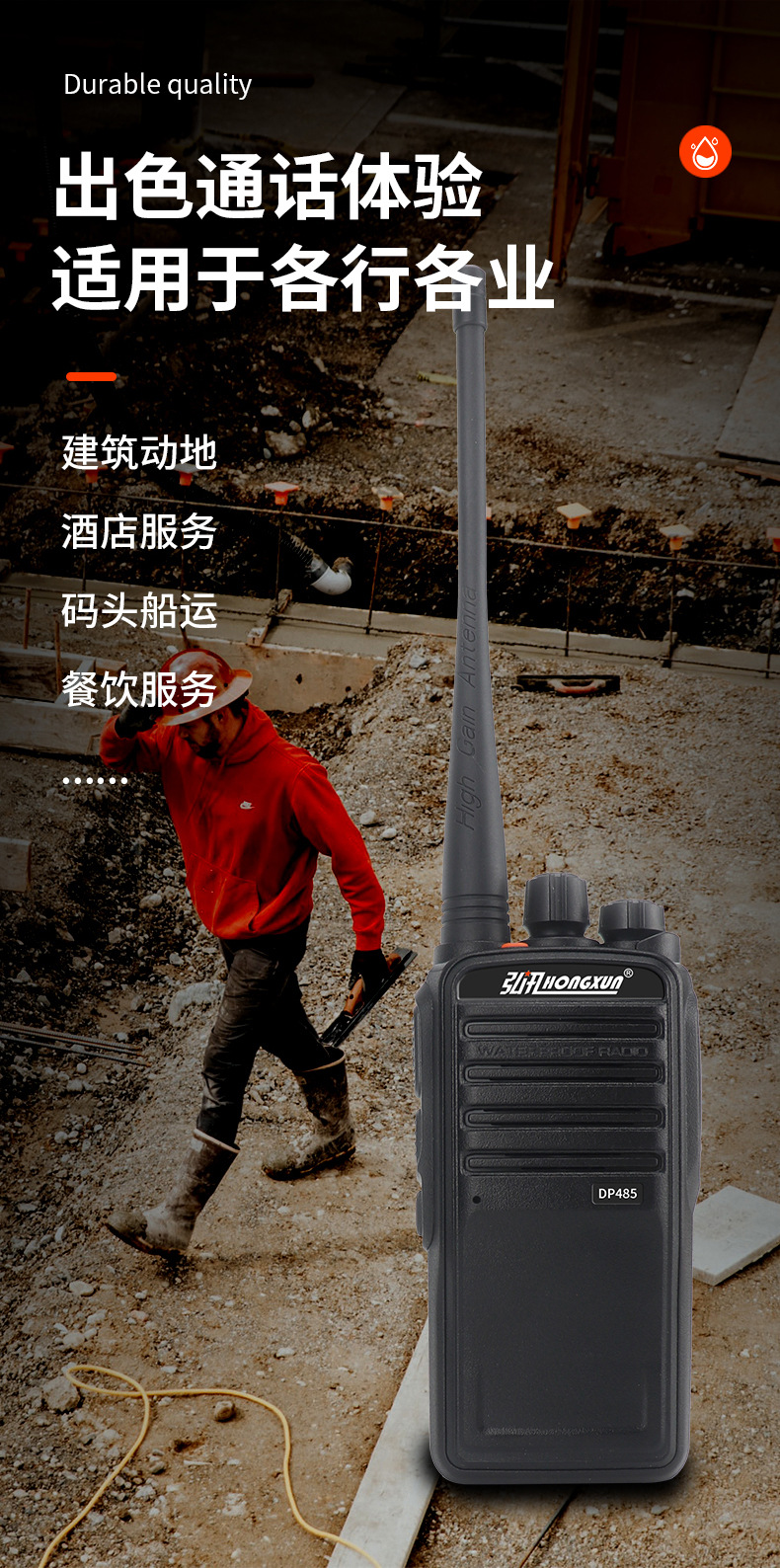 弘讯IP68防水防尘对讲机15瓦大功率船用民用工地港口防水对讲机专供出口 投诉