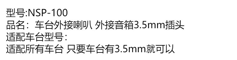 车台外接喇叭 外接音箱3.5mm插头NSP-100适配所有车台