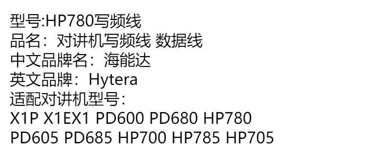 适配海能达PC152 X1P PD600 X1PD605新款HP780 HP700写频线编程线专供出口 投诉