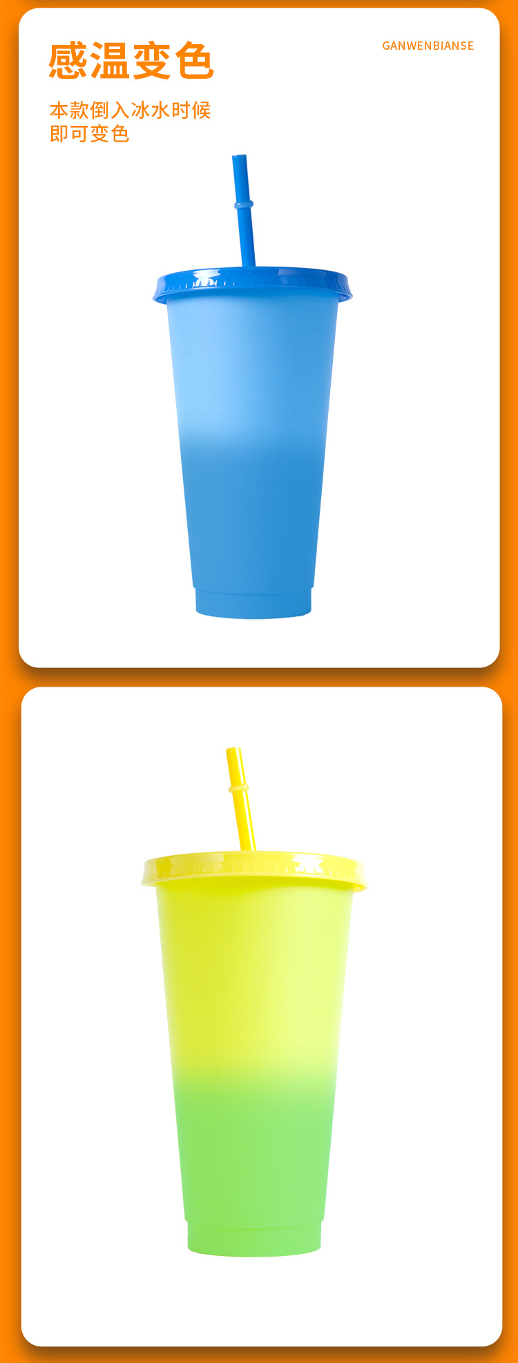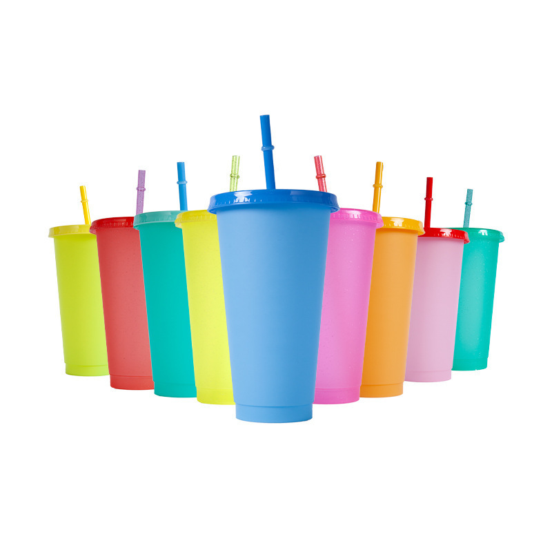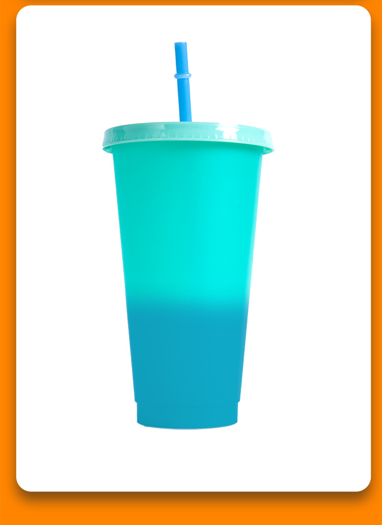 感温塑料变色杯饮料杯咖啡杯遇冷变色吸管杯可定LOGO