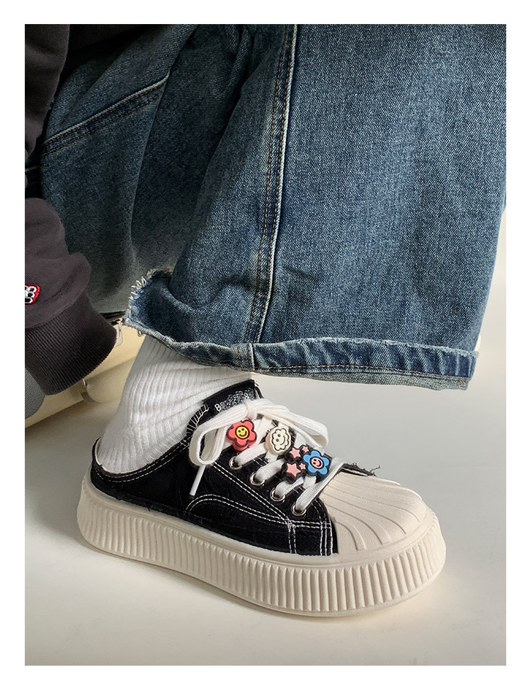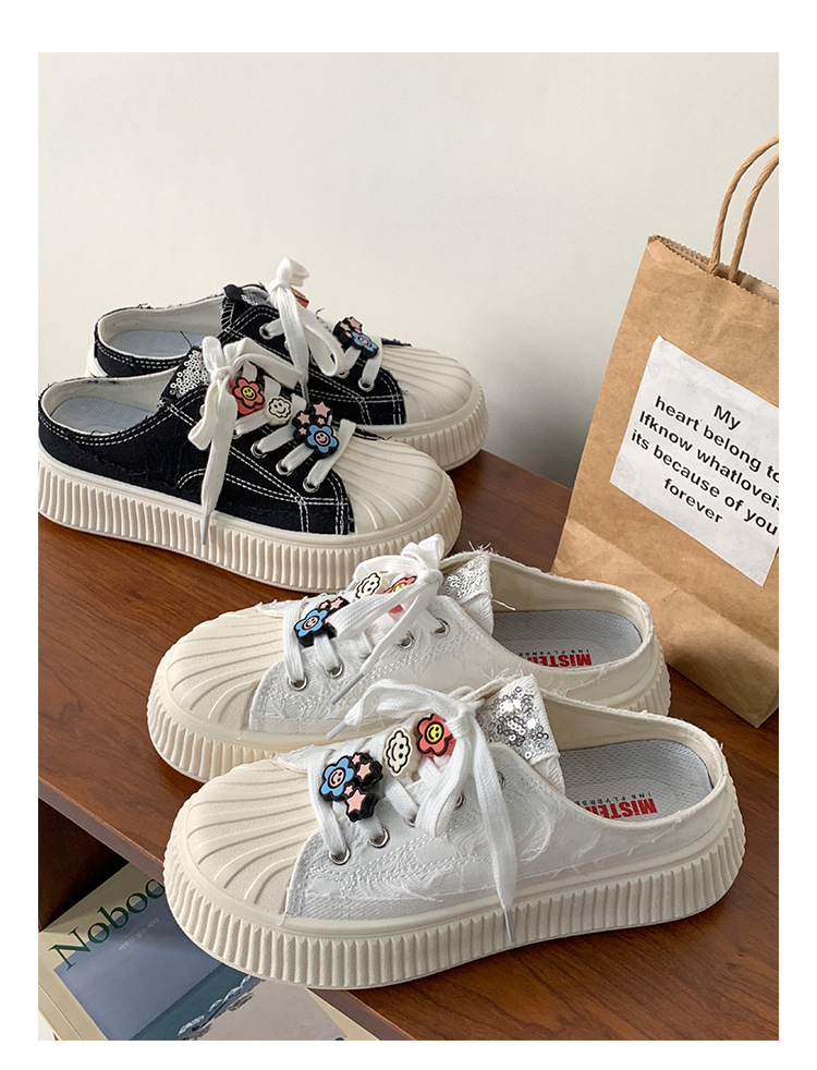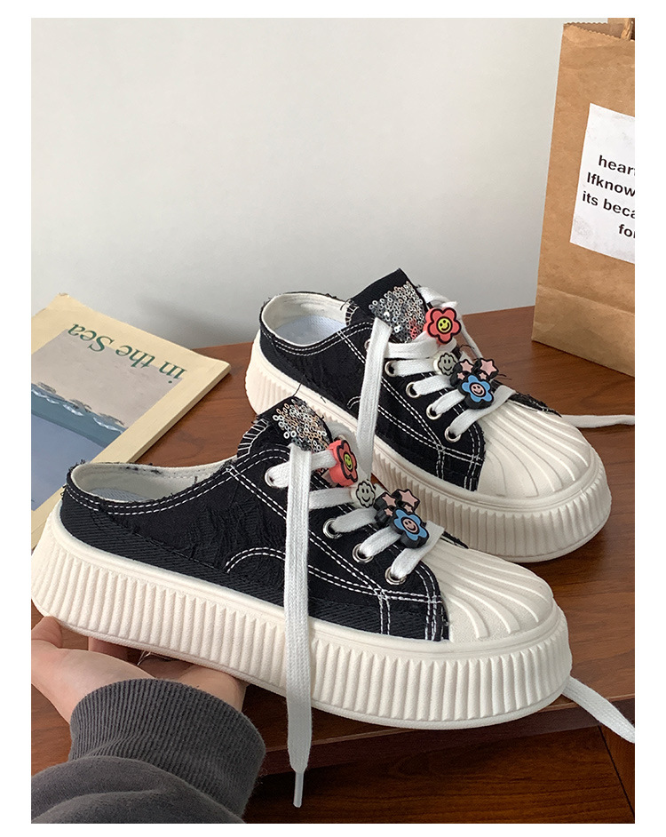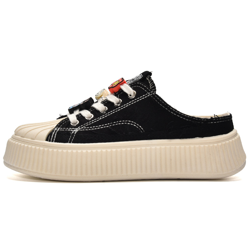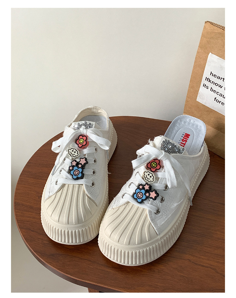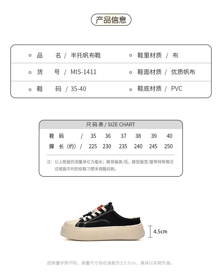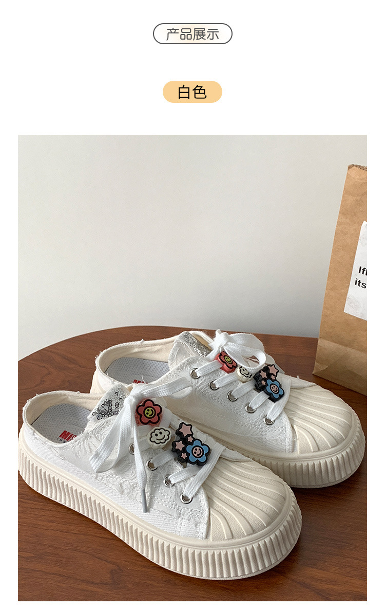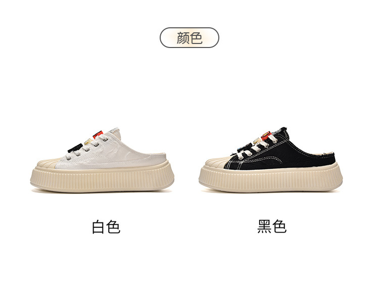 小白鞋女热卖2026新款厚底贝壳头半拖帆布鞋女MIS-1411 English | 投诉