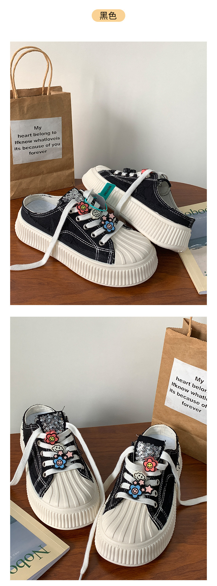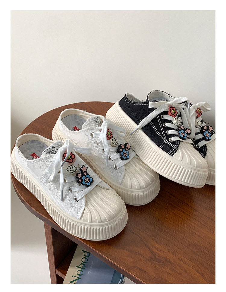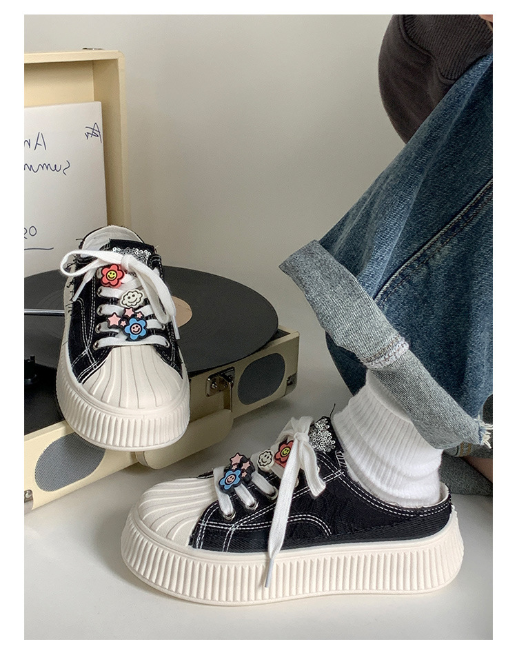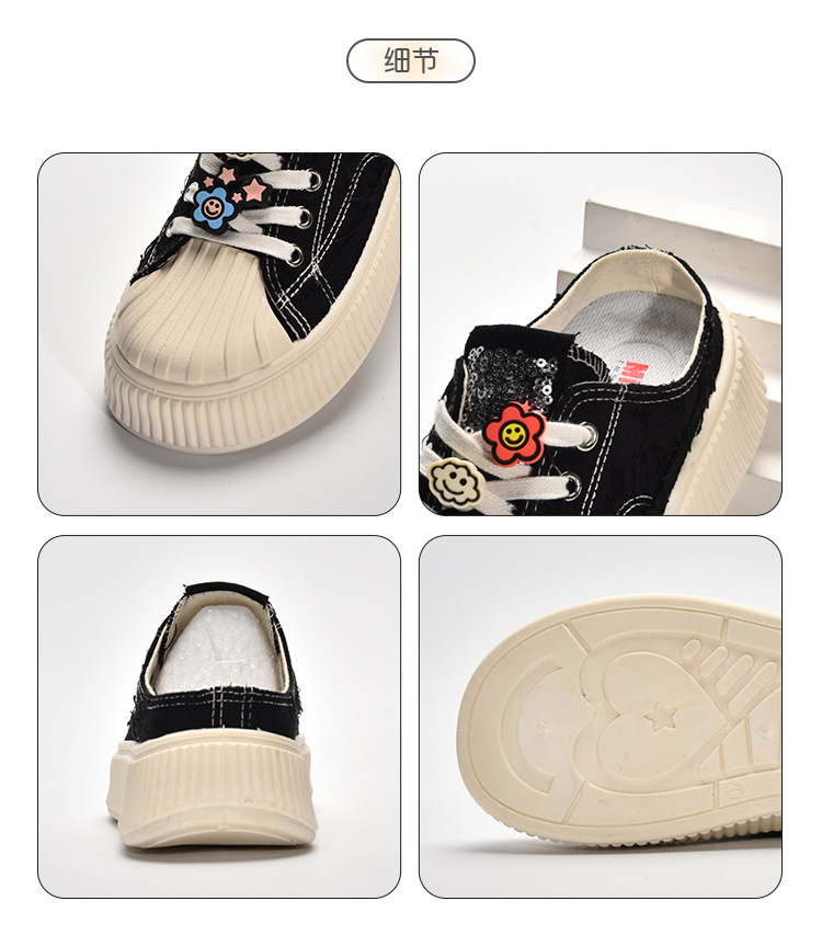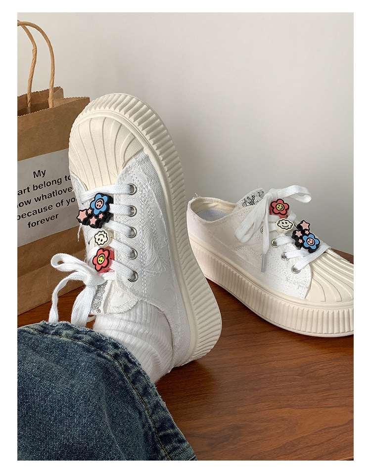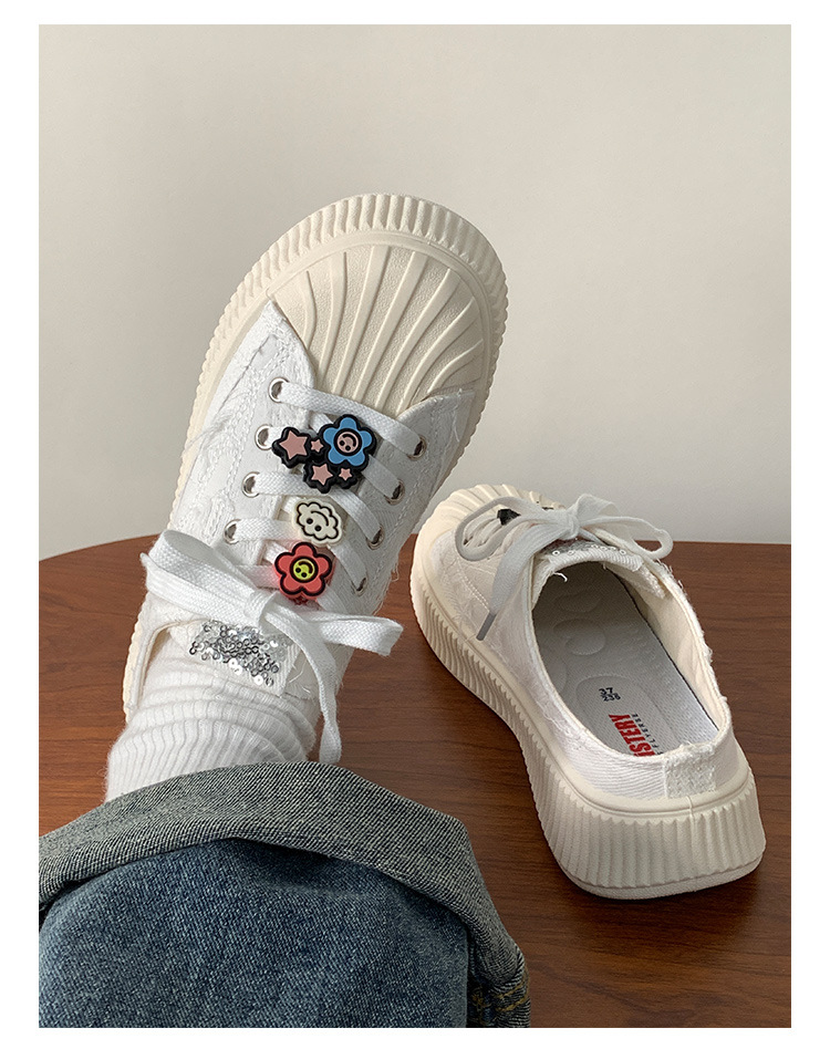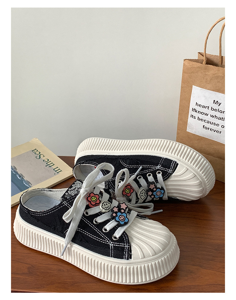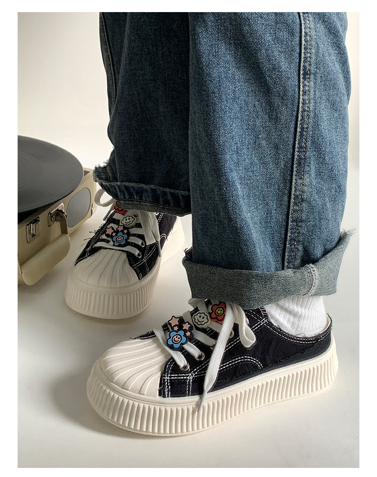 小白鞋女热卖2026新款厚底贝壳头半拖帆布鞋女MIS-1411 English | 投诉