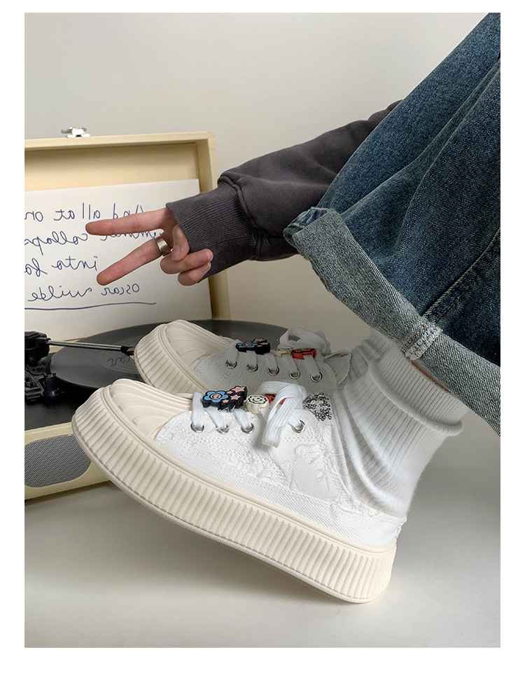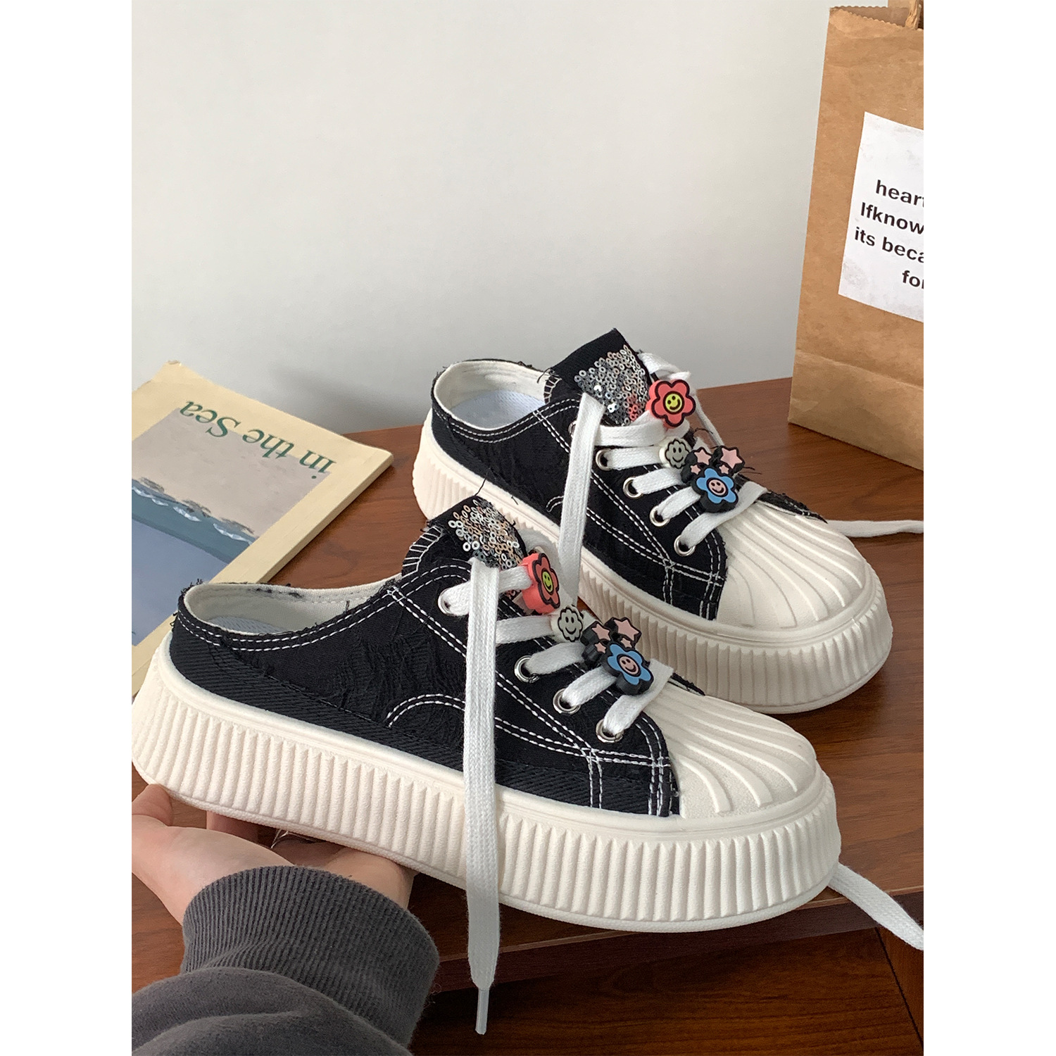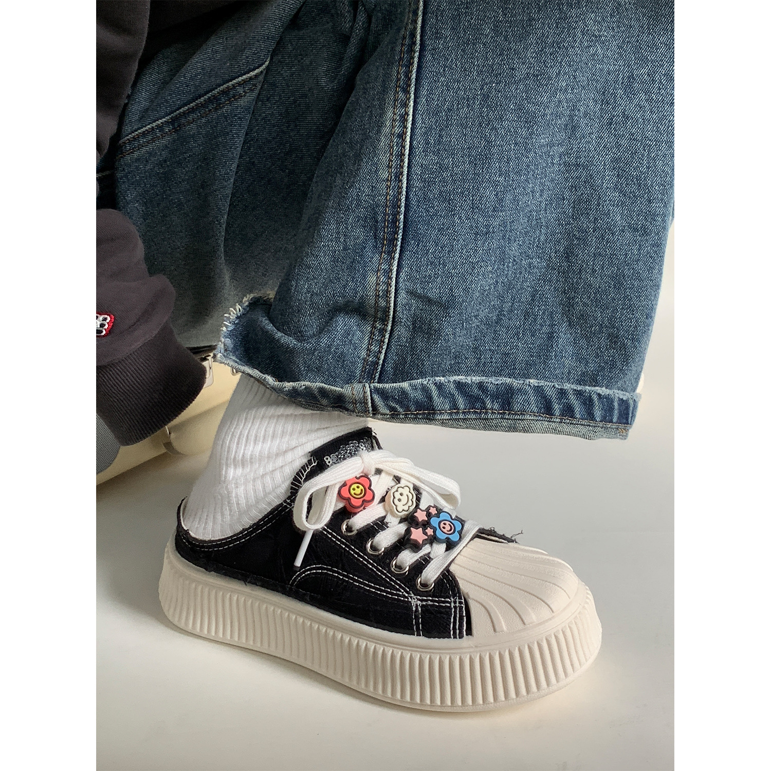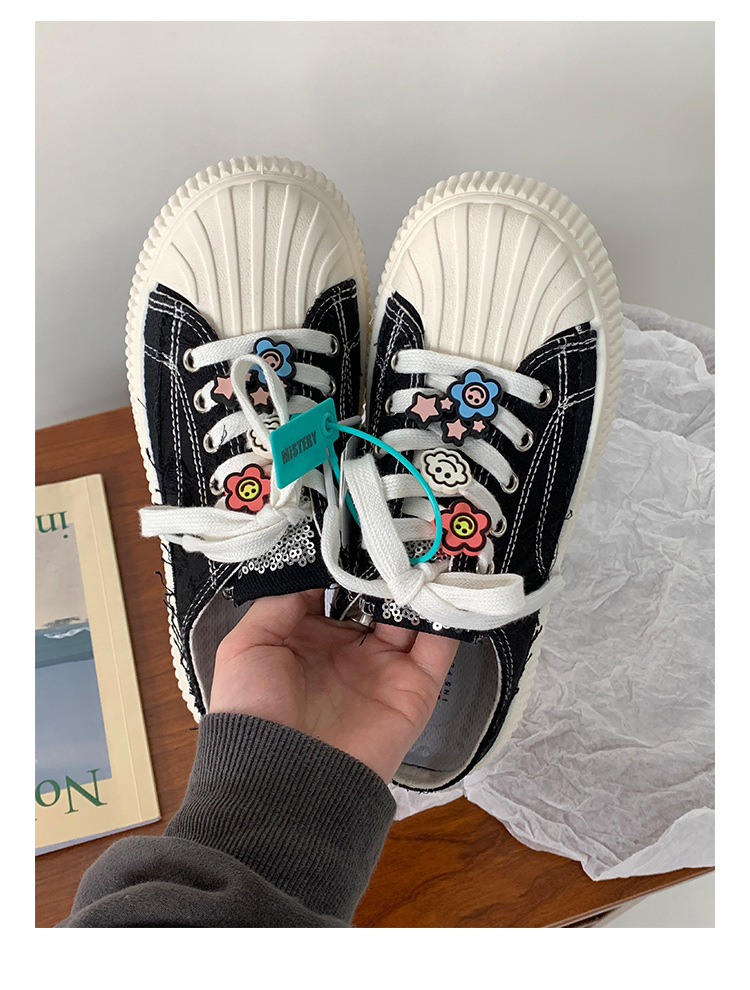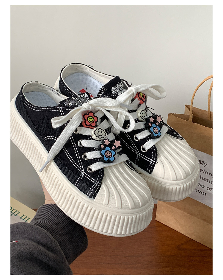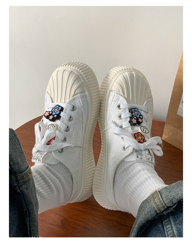小白鞋女热卖2026新款厚底贝壳头半拖帆布鞋女MIS-1411 English | 投诉