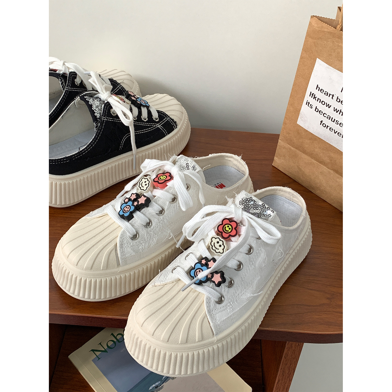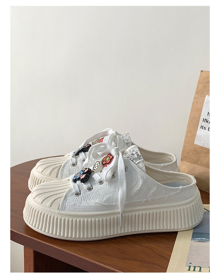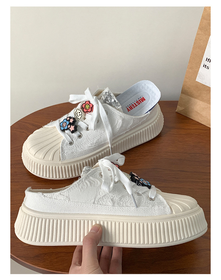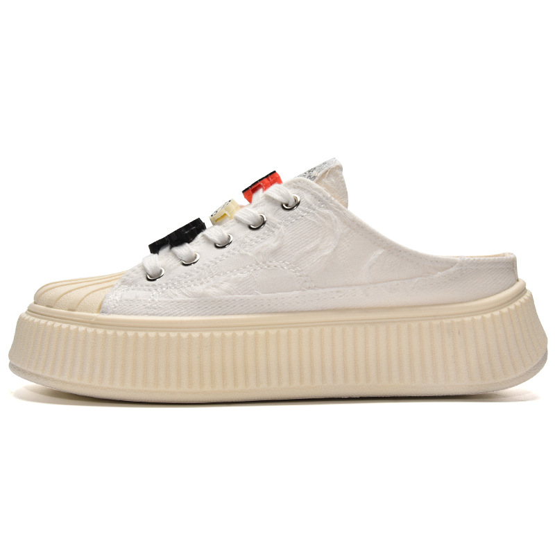 小白鞋女热卖2026新款厚底贝壳头半拖帆布鞋女MIS-1411
