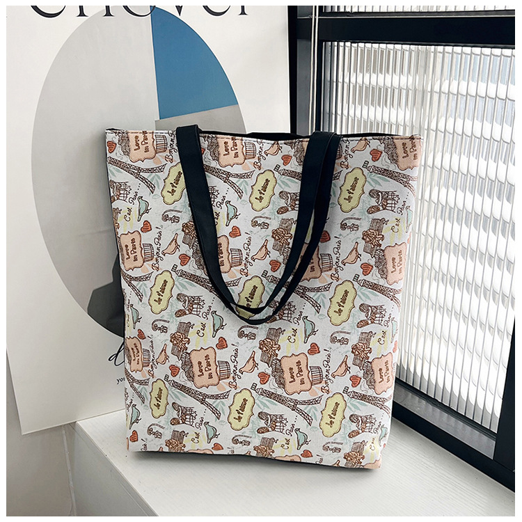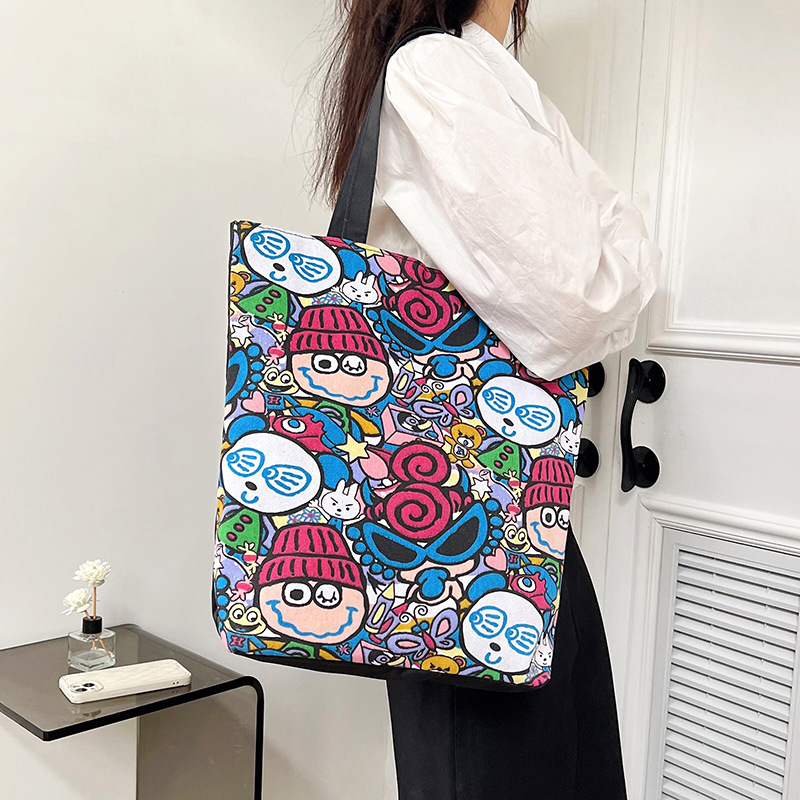 新款街头潮流单肩包帆布包女卡通印花学生手提包女包包休闲购物袋