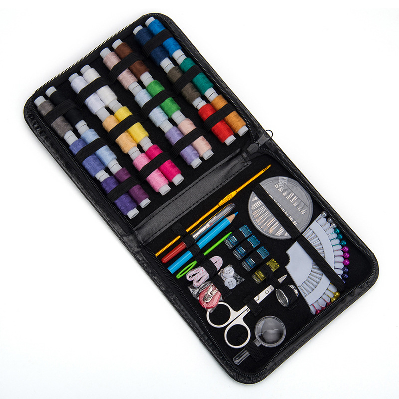 配件:纸筒线圈X24,针盘30支针X1,扇形珠光针18个X1,金属钩针X1,毛衣针X1,拆线刀X1,笔X1,皮尺X1,白扣X5,扣针X5,剪刀X1,塑料引线器X1,放大镜X1,帽子顶针X1,包边夹X4,pu包包X1
