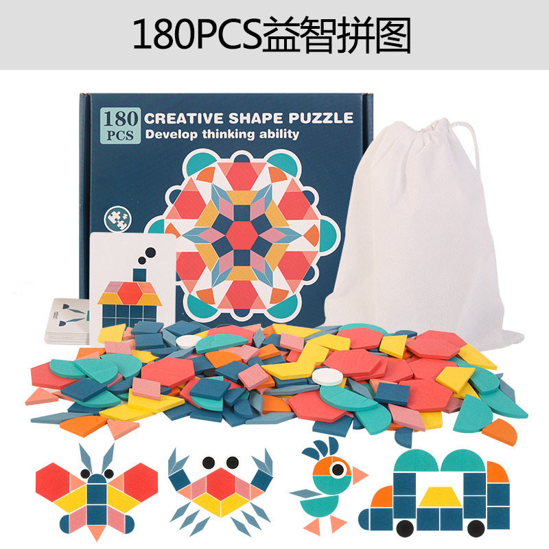 儿童早教益智180片puzzle拼图3-6岁幼儿园形状配对木质玩具拼拼乐 English | 投诉