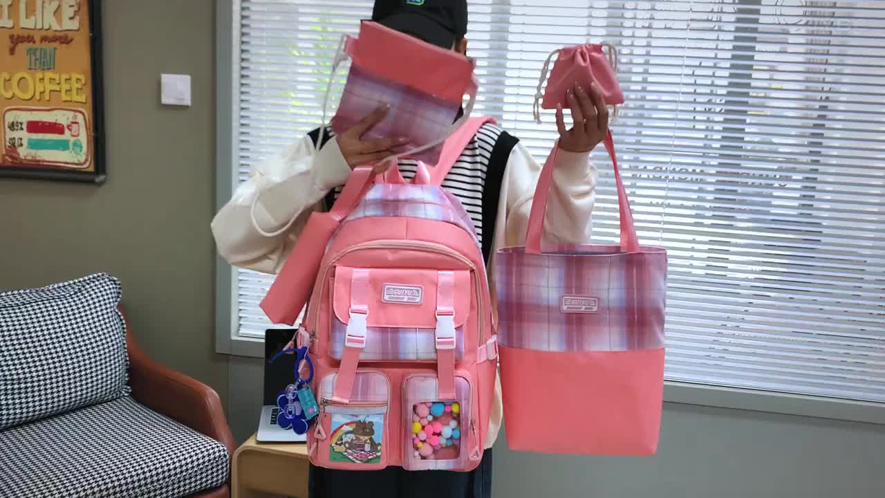 初中生多件套包书包小学生三到六年级减负护脊超轻便大容量双肩包