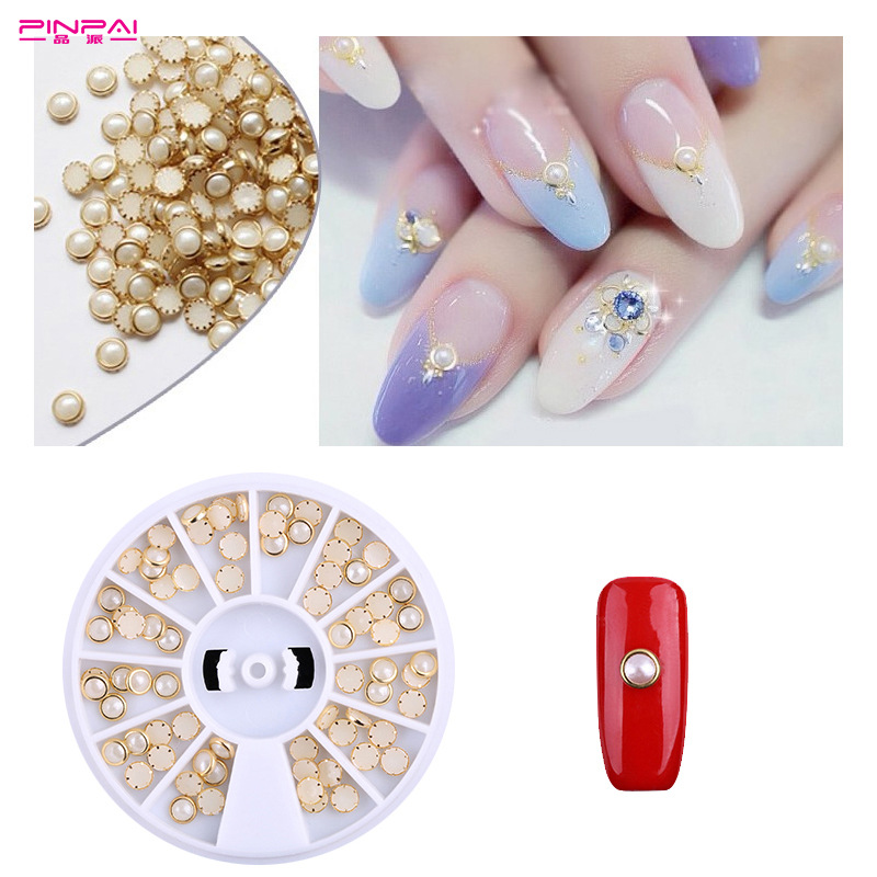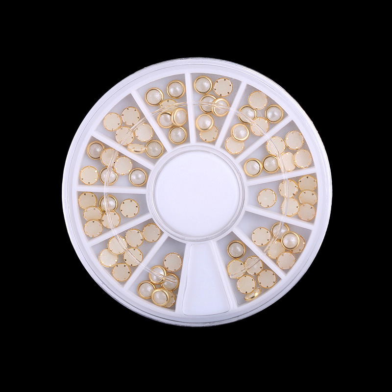 美甲饰品 日系包边珍珠 半圆平底 diy美甲贴钻饰品 盒装