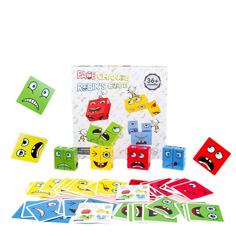 跨境新奇特双人变脸魔方积木 儿童益智早教亲子对战游戏木制玩具 English | 投诉