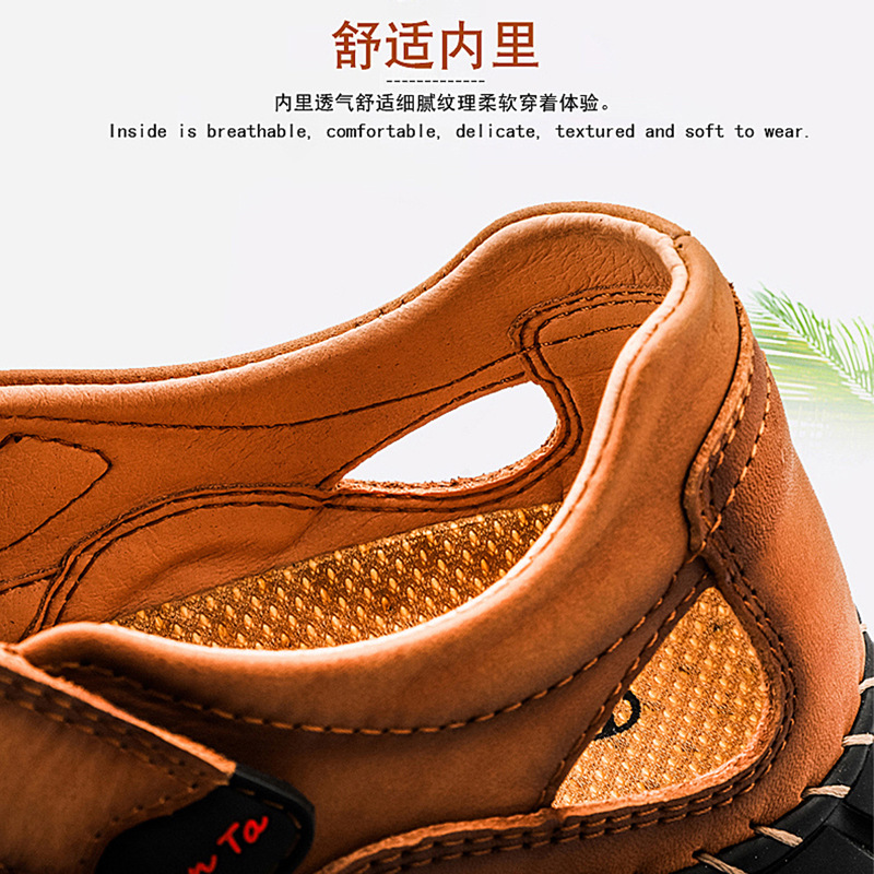 头层牛皮凉鞋男新款沙滩鞋透气休闲户外鞋一件代发跨境大码男拖鞋 English | 投诉