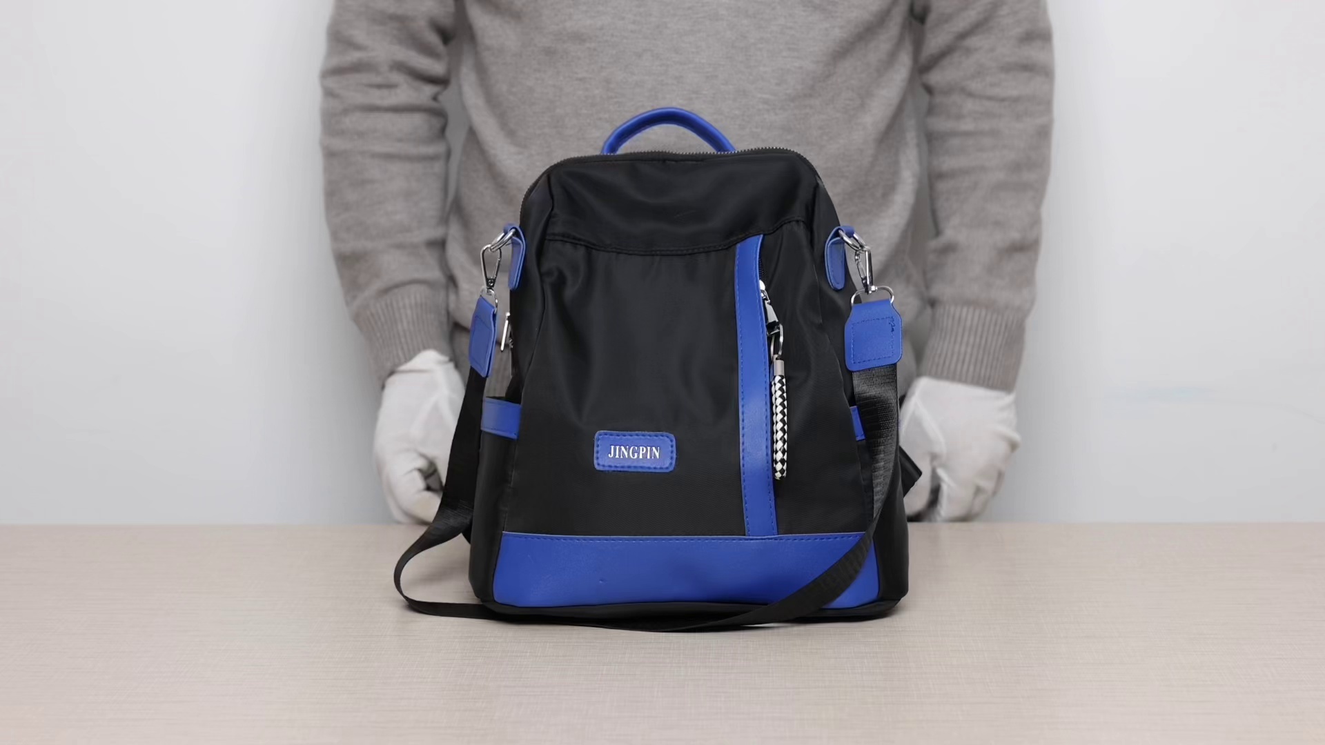 带挂件撞色双肩包 学生包女式背包两用 投诉