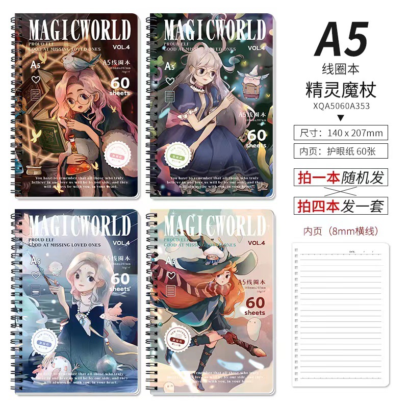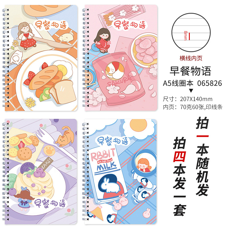 A5卡通厚线圈本活页笔记本子可爱韩版学生小清新侧翻螺旋记事本