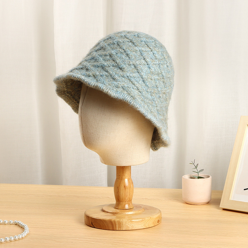 帽子女秋冬日系复古格纹渔夫帽文艺时尚水桶帽街头针织百搭盆帽潮