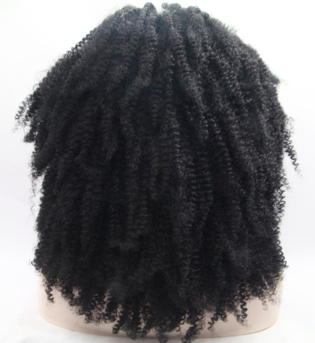 欧美假发女士黑色非洲小卷假发前蕾丝化纤半手织头套厂家LW0379