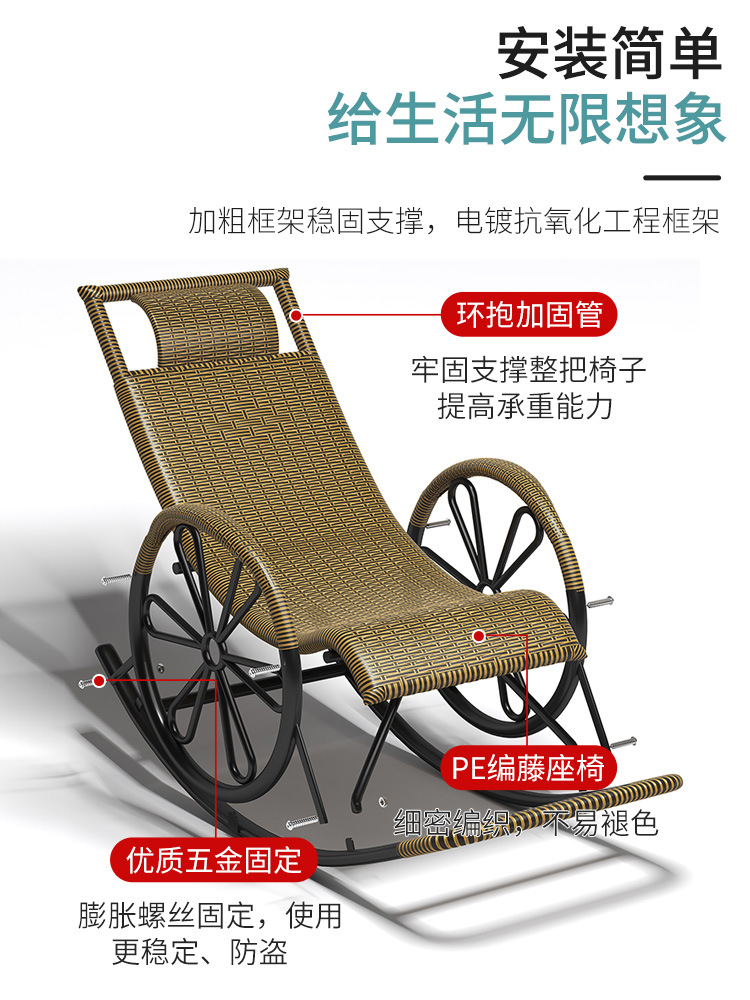 滕椅藤椅藤编躺椅新中式老人休闲懒人阳台摇摇椅靠背椅逍遥椅家用 投诉
