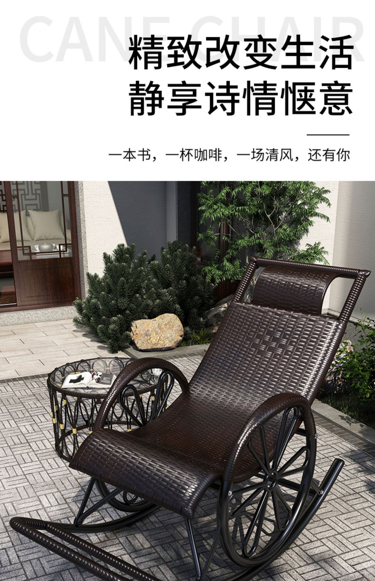 滕椅藤椅藤编躺椅新中式老人休闲懒人阳台摇摇椅靠背椅逍遥椅家用