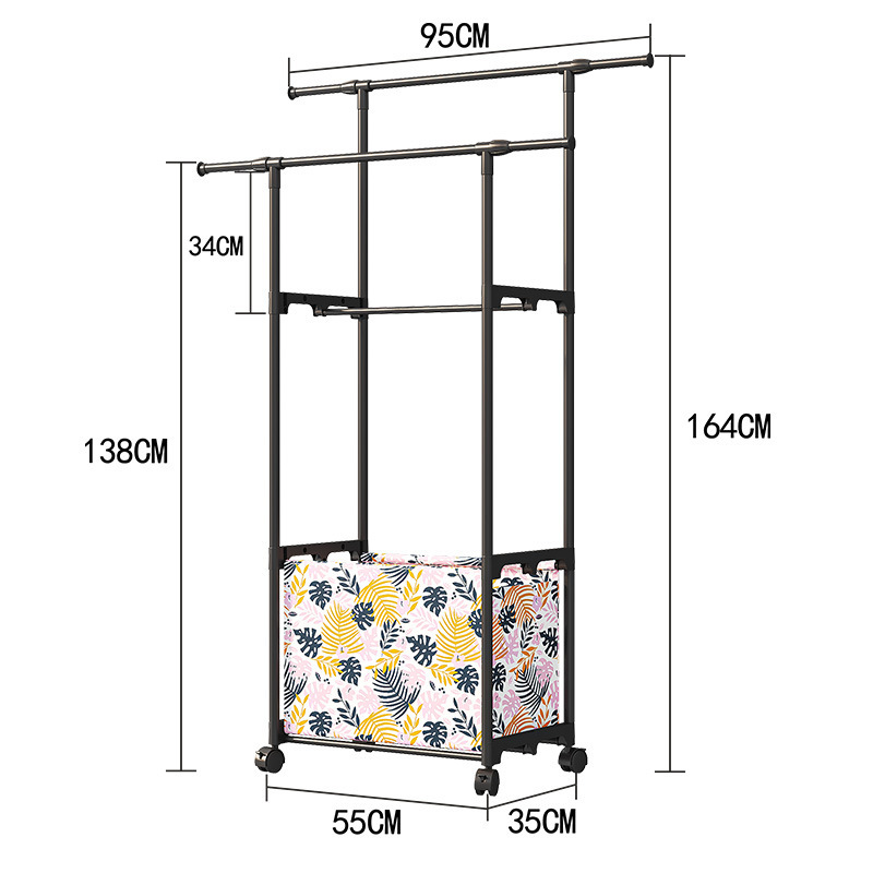 热销简易款家用双杆晾衣架收纳脏衣篮卧室衣帽架裤架鞋帽架 English | 投诉